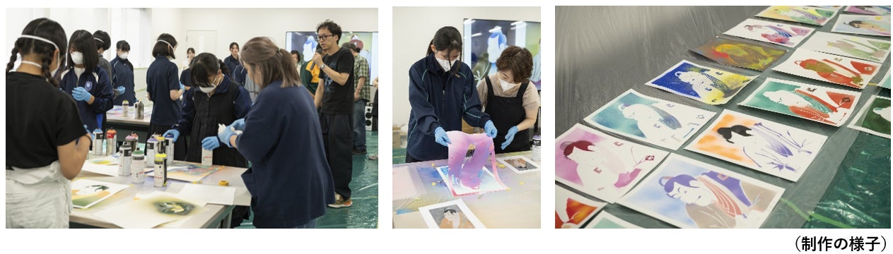 江戸博のロゴマークは写楽作「市川 鰕蔵の竹村 定之進」の左目を元にデザインされています。その目に込められた思いを、墨田区立両国中学校、日本大学第一中学・高等学校の生徒が様々な視点で表現した壁画です。制作は、浮世絵(版画)の仕組みをスプレーとステンシル(型紙)で再解釈した手法で行い、絵の中のパーツを自由に組み合わせながらそれぞれの「写楽の眼」を表現しました。