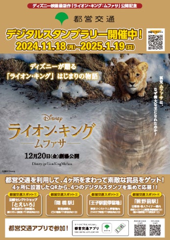 東京都交通局はディズニー映画最新作『ライオン・キング:ムファサ』の公開を記念して、都営交通アプリを使用したデジタルスタンプラリーを実施します。