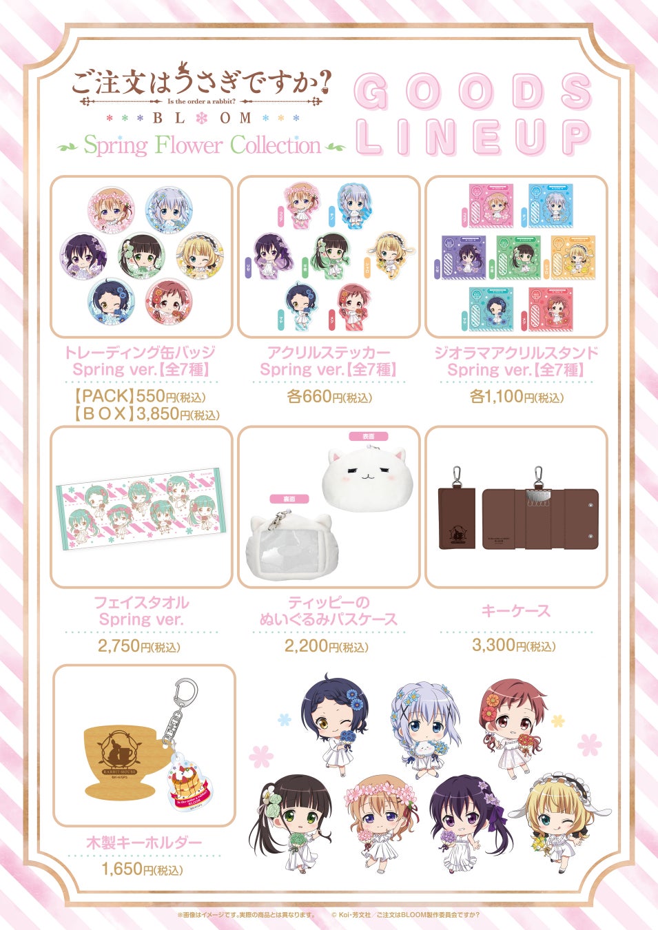 「ご注文はうさぎですか? BLOOM ~Spring Flower Collection~」が本日4月1日(金)より開催!花をモチーフにした新規描き起こしデザインのグッズが登場!