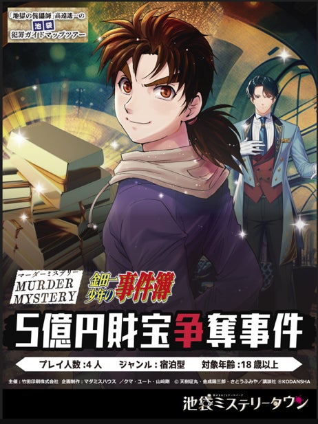 『池袋ミステリータウン』は、一般社団法人としまアートカルチャーまちづくり協議会(東京都豊島区/代表理事 前田三郎)が主催し、10以上のミステリーアトラクションを池袋各所に展開し、池袋をミステリーの聖地とすることを目的にしたプロジェクトです。『金田一少年の事件簿』とのコラボ第1弾、サンシャインシティプリンスホテルでの宿泊型のマーダーミステリーに続く今作は、金田一一とLINEでやりとりしながら事件現場を捜査する周遊型謎解きアトラクションです。
