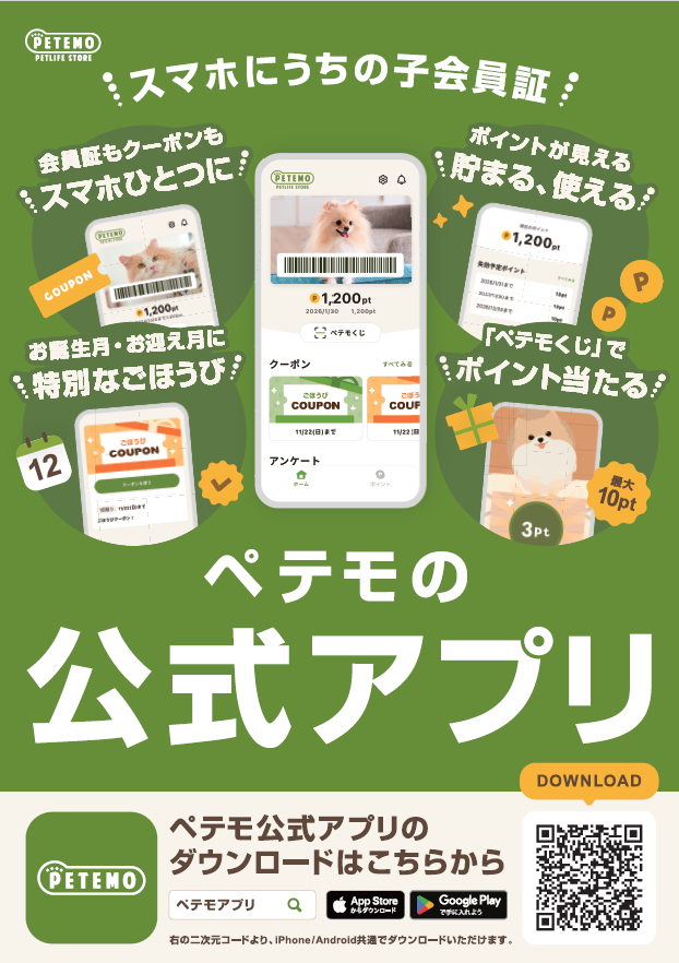 アプリ名称:「ペテモの公式アプリ」