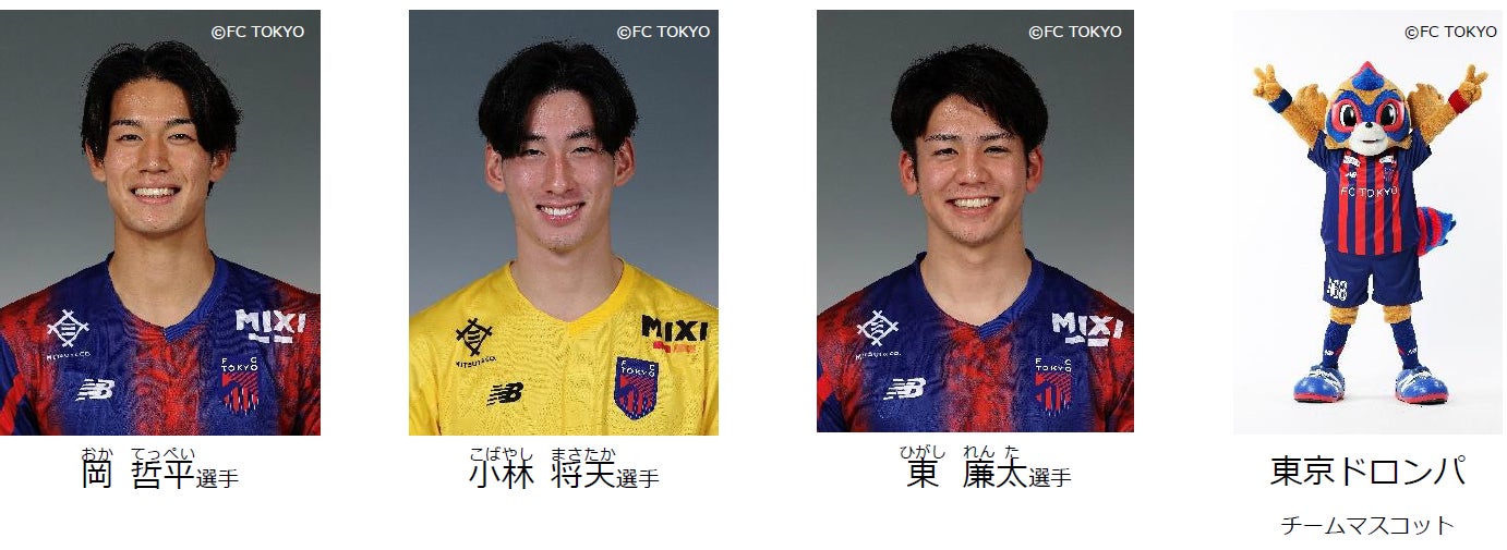 以下3名の現役プロサッカー選手とともに、チームマスコットの「東京ドロンパ」も登場します。