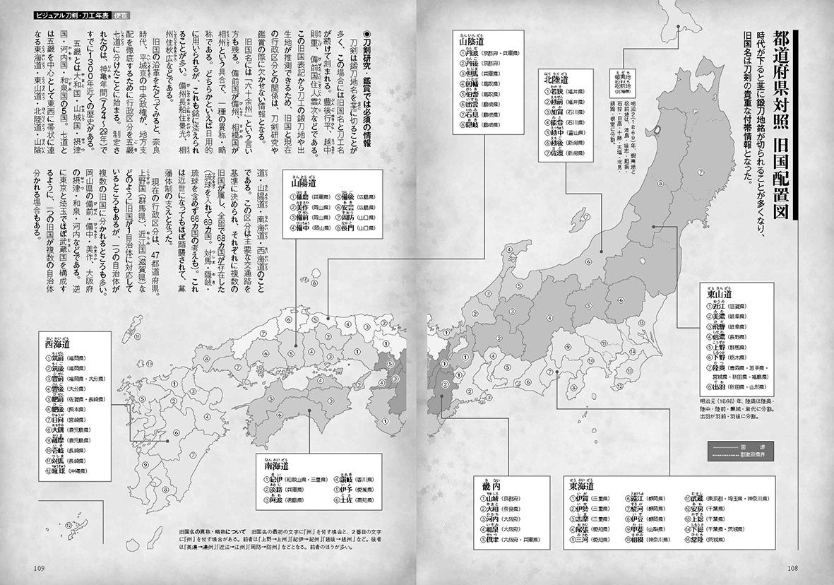 巻末には刀剣鑑賞に役立つ、十干十二支順位表と二十四節気、旧国配置図などの便覧も付けました。