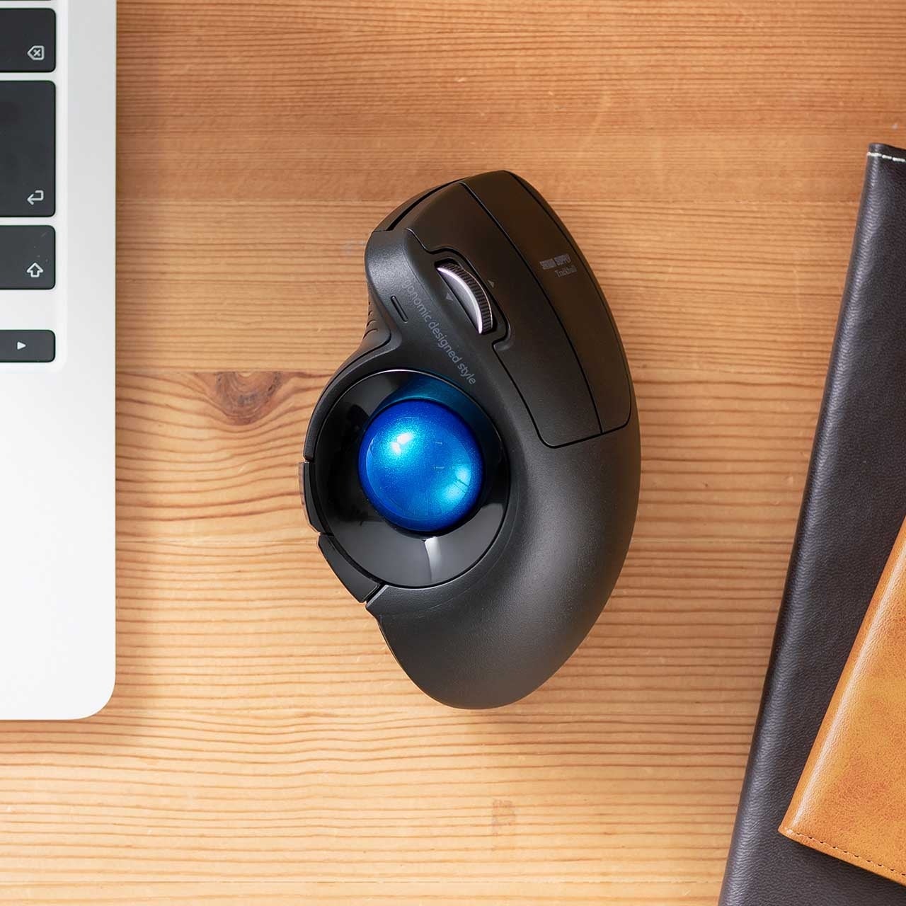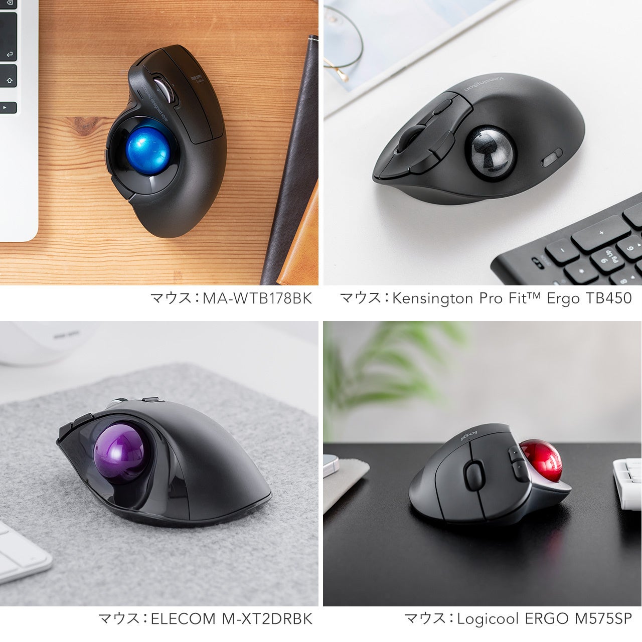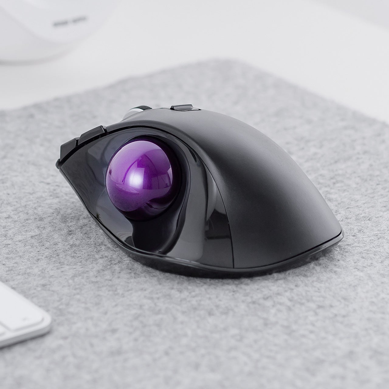 レッド、ブルー、ブラック、バイオレットの4色から選べます。エレコム、ロジクール、Kensington、ProtoArcなどの他社製の34mmトラックボールマウスにも対応します。