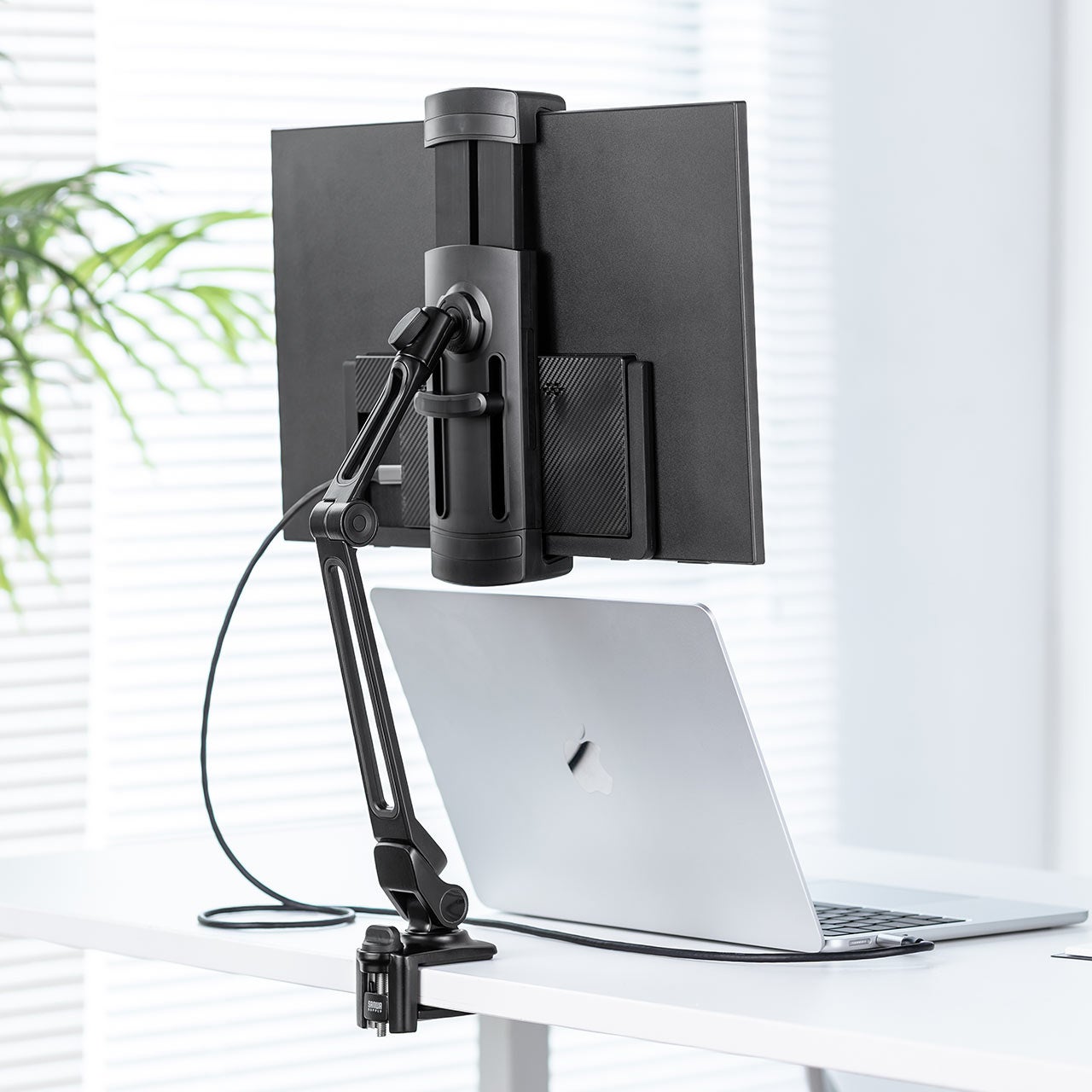 モバイルモニタースタンド クランプ 17.3インチ 16インチ 15.8インチ 15.6インチ 360°回転 3関節アーム 高さ・角度調整 モバイルディスプレイ iPad タブレット
