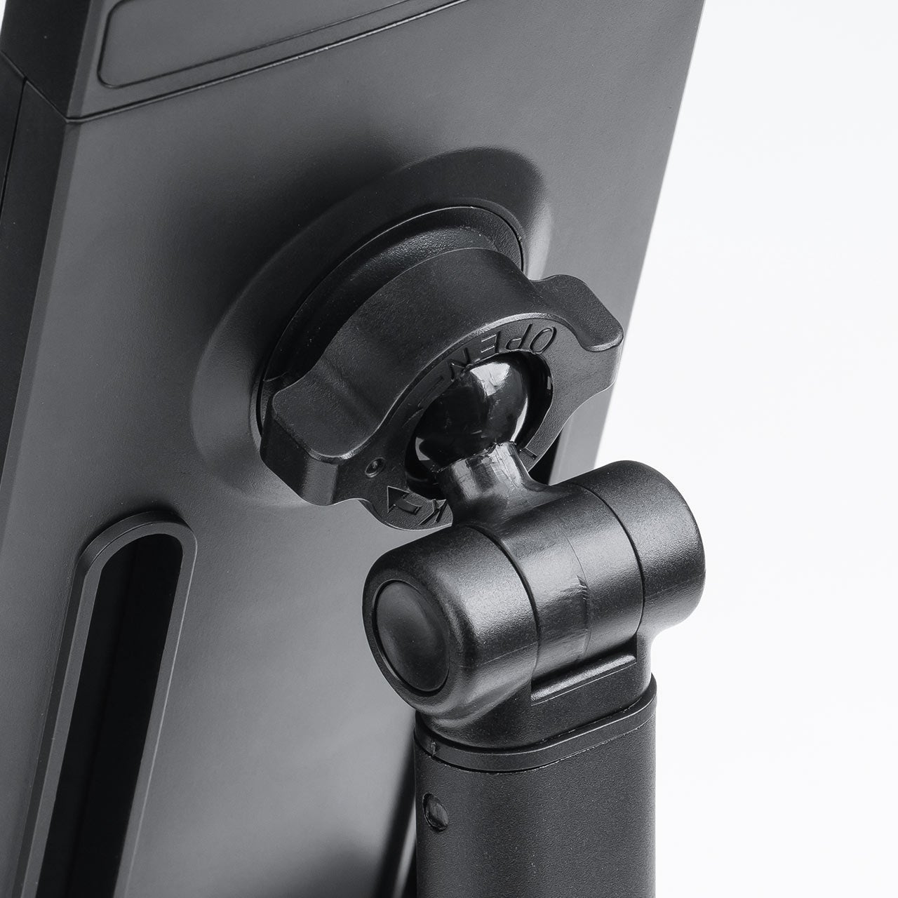 ホルダー部分は360度回転可能なボールジョイント構造。縦横の切り替えや、上下左右の角度調節にも対応。使用シーンに応じて、見やすいポジションに瞬時に調整できます。