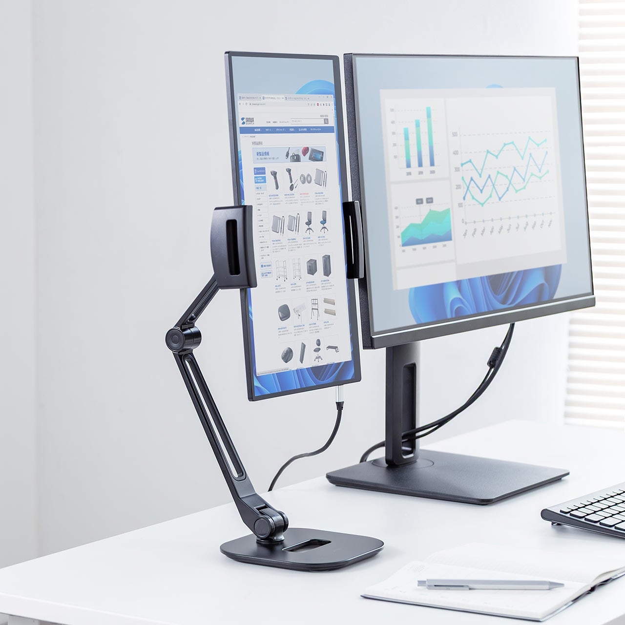 モバイルモニタースタンド 据え置き 17.3インチ 16インチ 15.8インチ 15.6インチ 360°回転 3関節アーム 高さ・角度調整 モバイルディスプレイ iPad タブレット