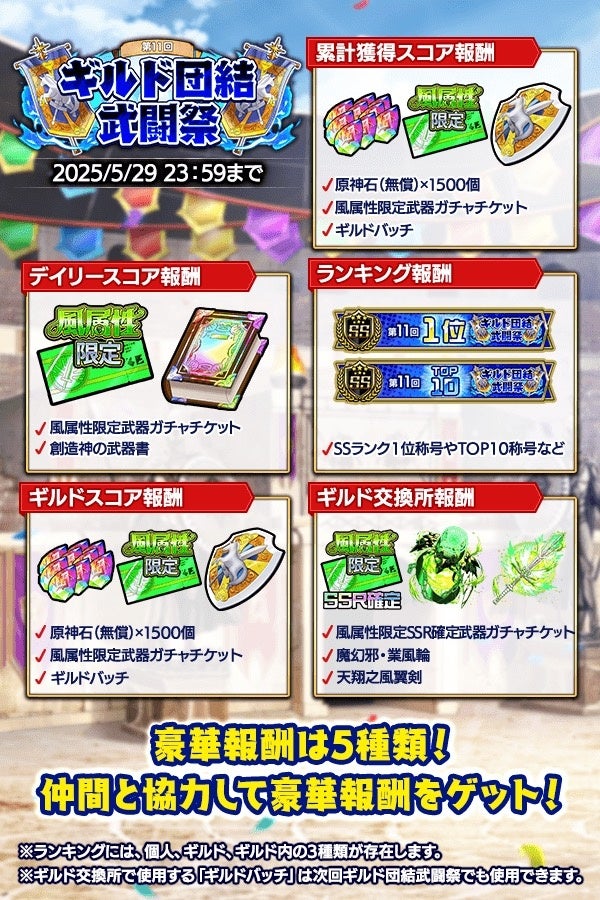 ギルドメンバーと力を合わせて豪華報酬を獲得するイベント「ギルド団結武闘祭」が開催!