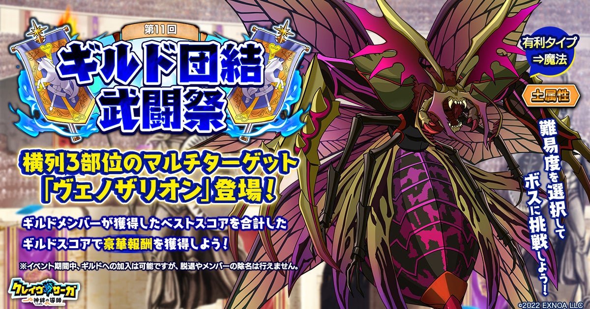 合同会社EXNOA(本社:東京都港区、CEO:村中 悠介、URL:https://games.dmm.com/)が運営するDMM GAMESにおいて本日5月23日(金)より、共感できる「推し」が見つかるRPG『クレイヴ・サーガ 神絆の導師』にて新たなギルド団結武闘祭が開催されたことをお知らせいたします。