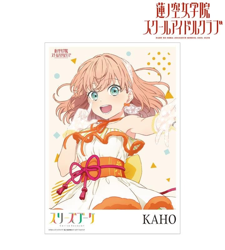 日野下 花帆、村野 さやか、乙宗 梢、夕霧 綴理、大沢 瑠璃乃、藤島 慈の楽曲衣装ポーズイラストをA3サイズのマット加工されたポスターに仕上げました。