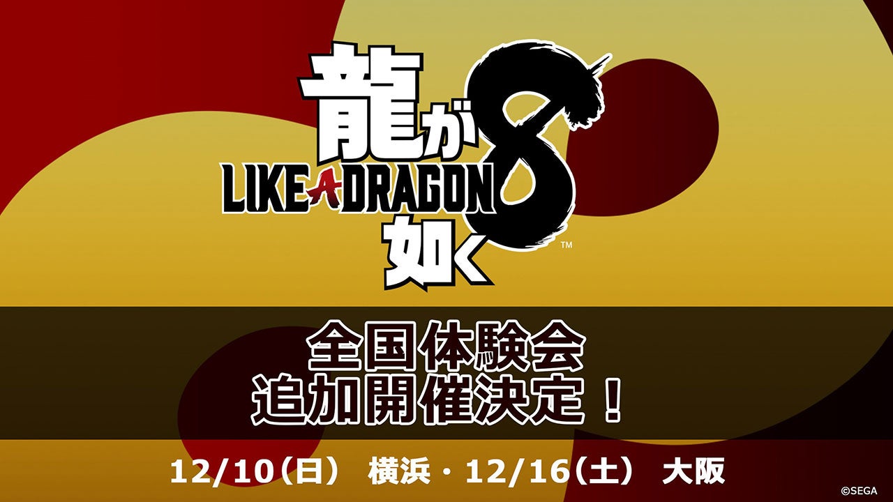 『龍が如く8』体験会の開催場所、ゲストスケジュール発表!大阪会場では「龍スタTV」公開生放送を配信