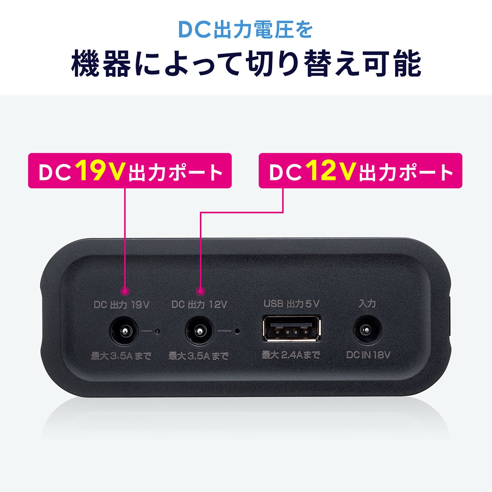 モバイルバッテリー DC12V/19V出力対応 20000mAh 72Wh 大容量 ノートパソコン USB充電 飛行機持ち込み可 出張 PSE適合品