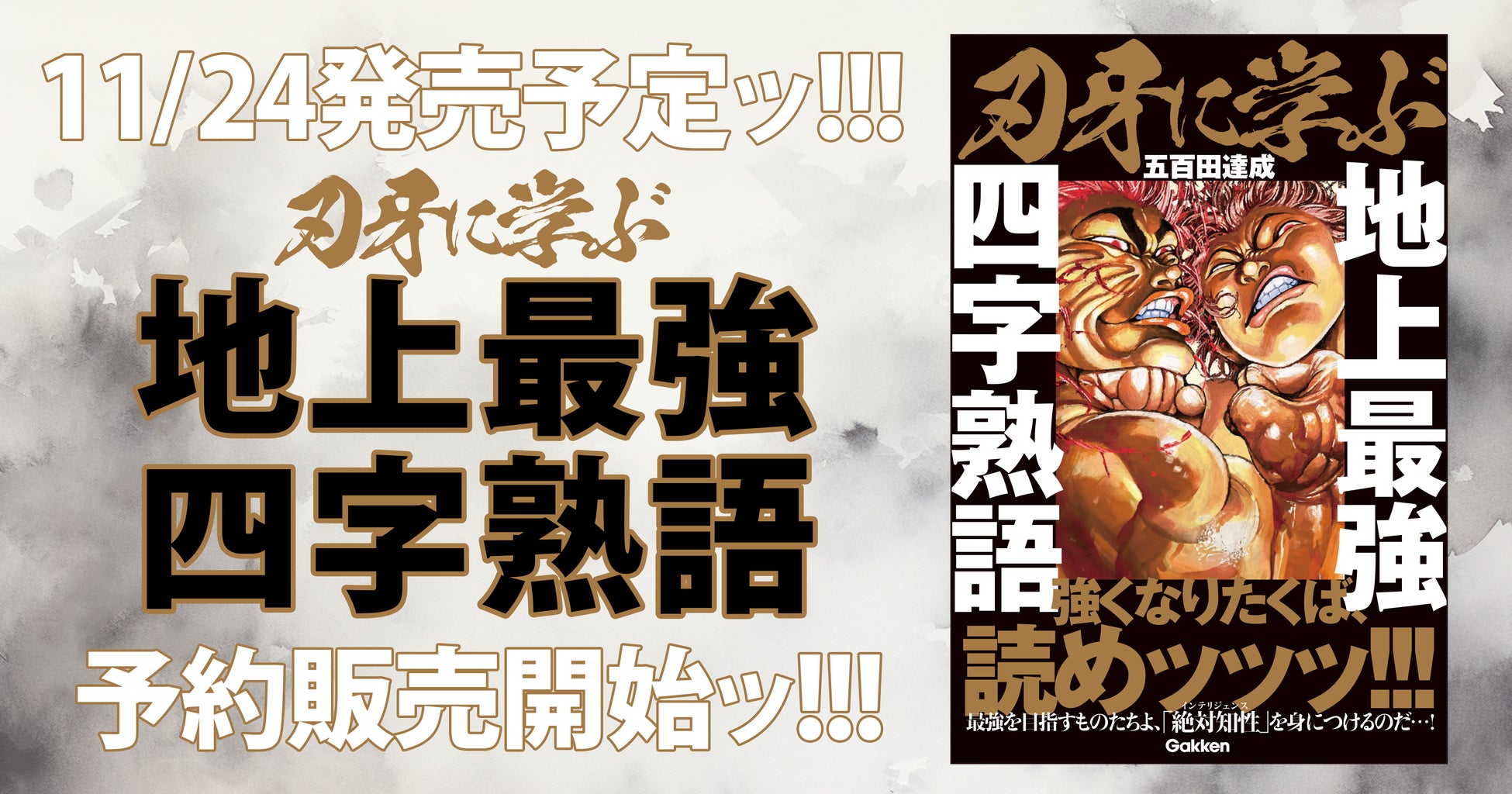 「言葉」に強くなりたくば、これを読めッッッ‼‼ 連載30周年・板垣恵介先生の大人気格闘漫画「刃牙」シリーズの名シーン×四字熟語で最強の語彙力が得られる『刃牙に学ぶ 地上最強四字熟語』発売決定ッッッ‼‼