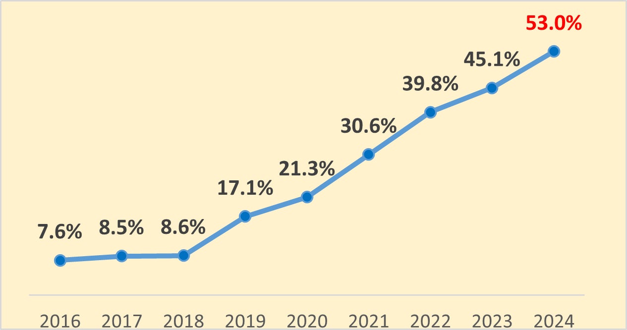 ■昨年比7.9ポイント増。過去最高となりましたが…