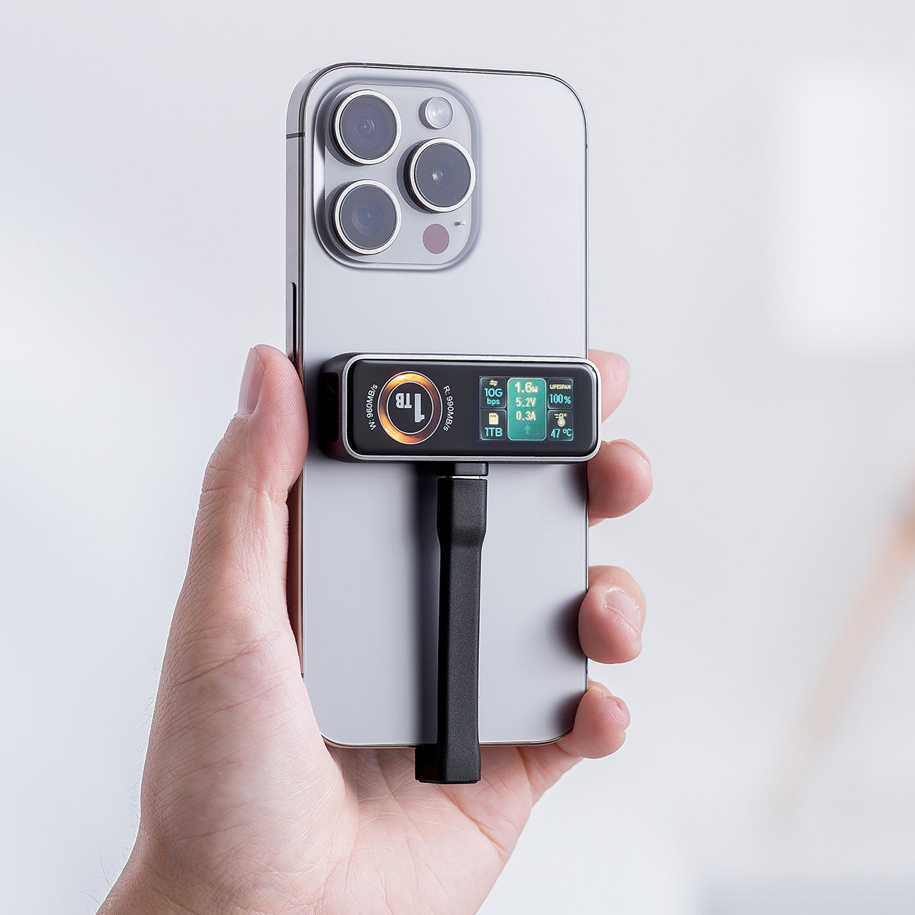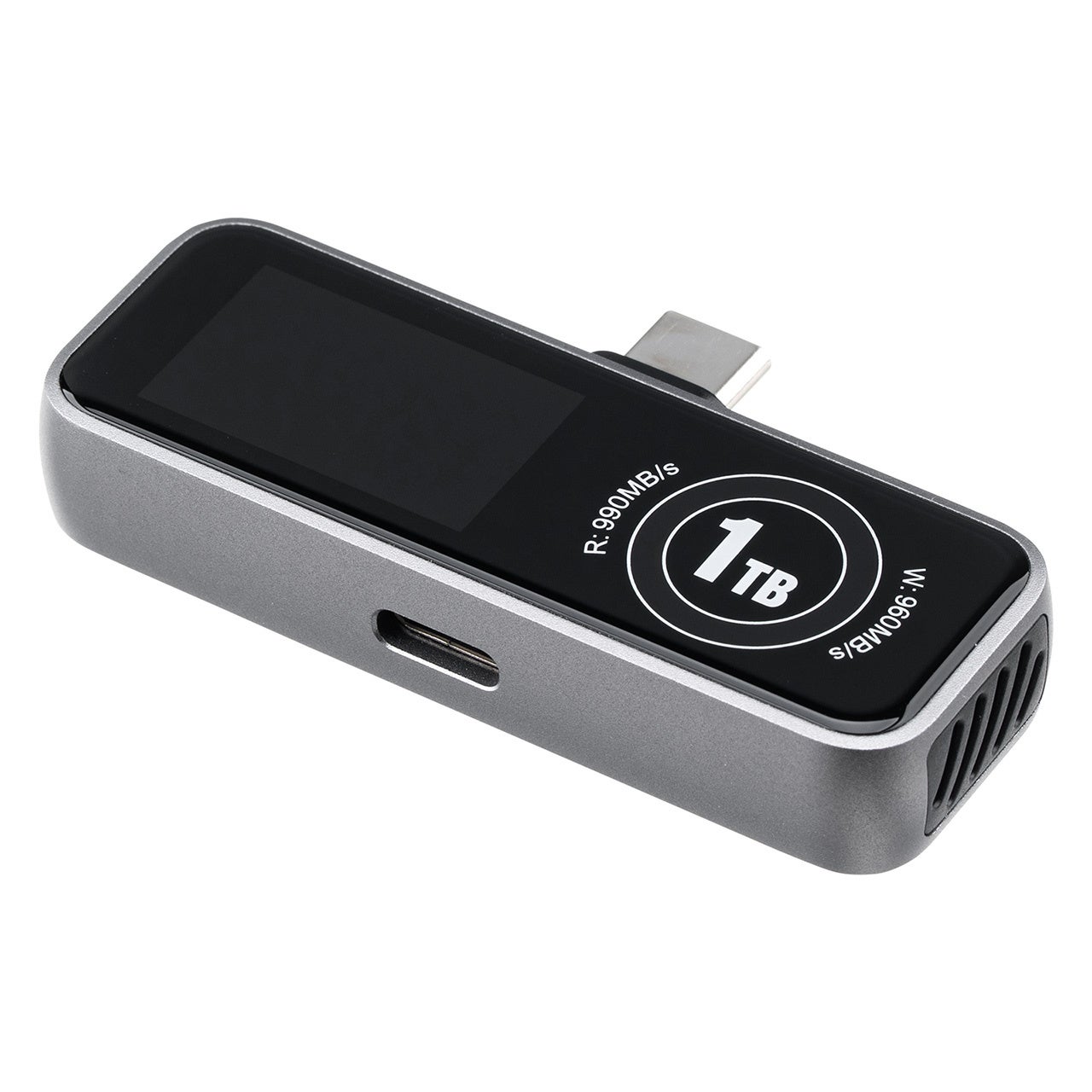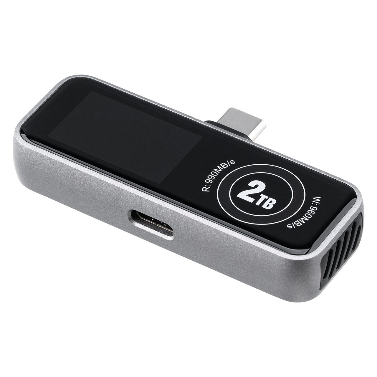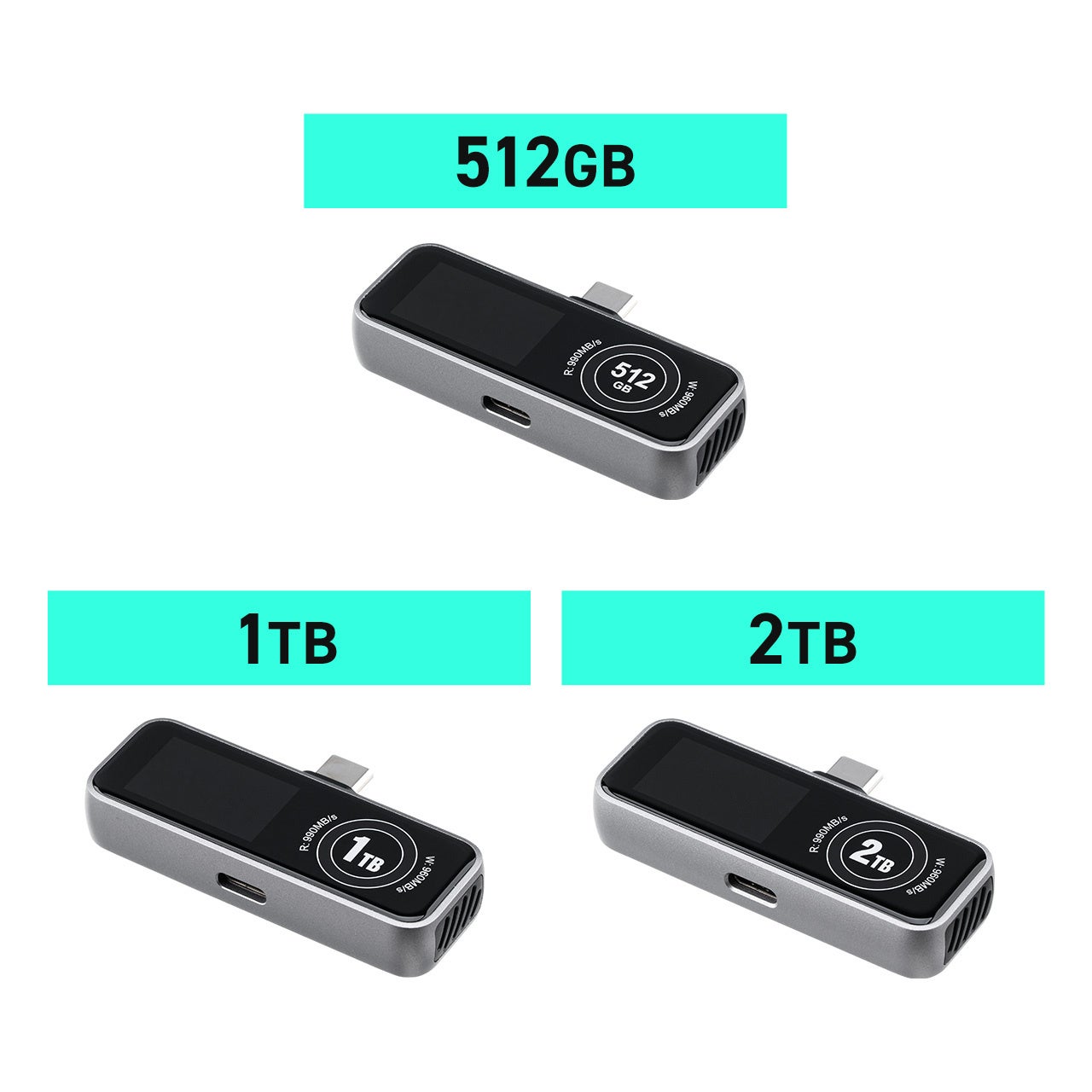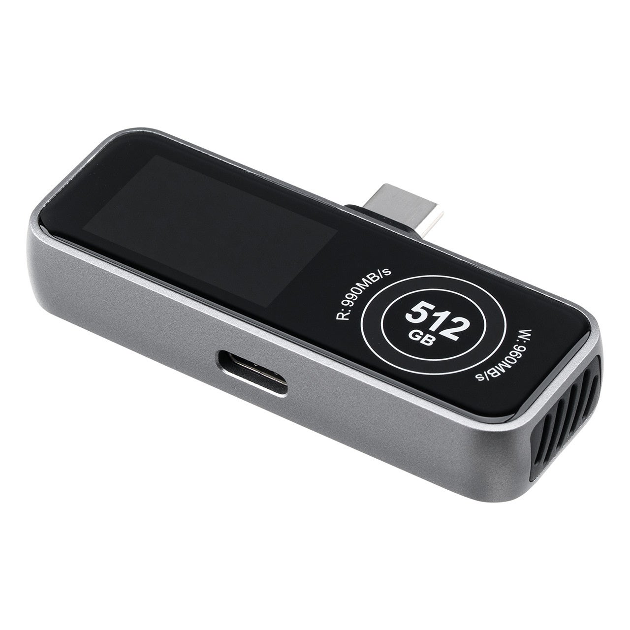 本製品は、冷却ファンと液晶画面付きのUSB-C ポータブル外付けSSDです。