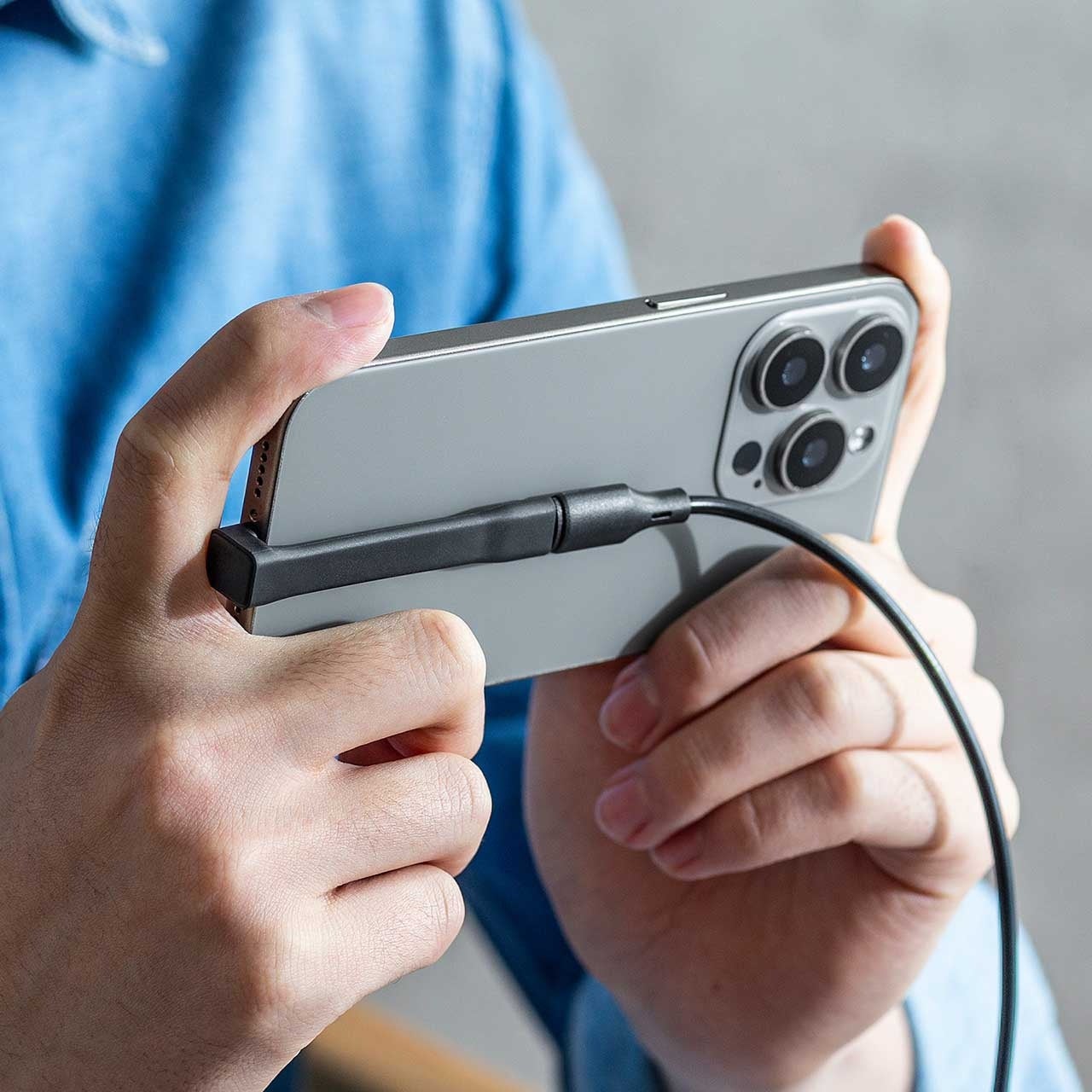 付属の延長ケーブルを使用することで、スマホの背面にマグネットで固定することができます。