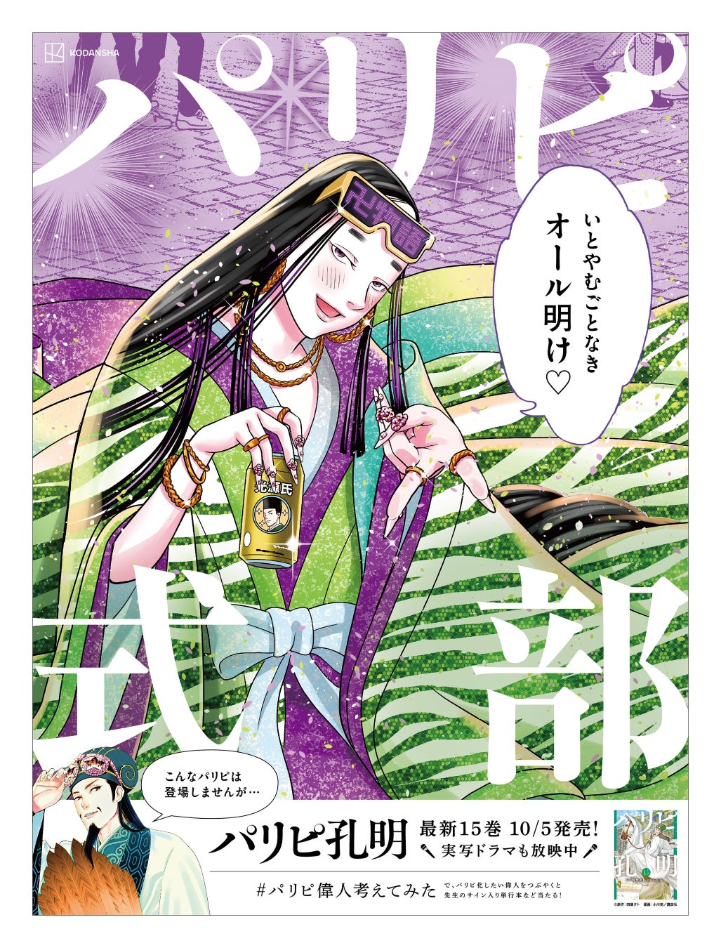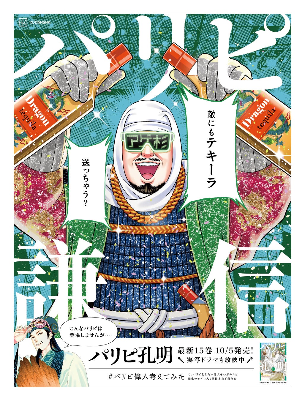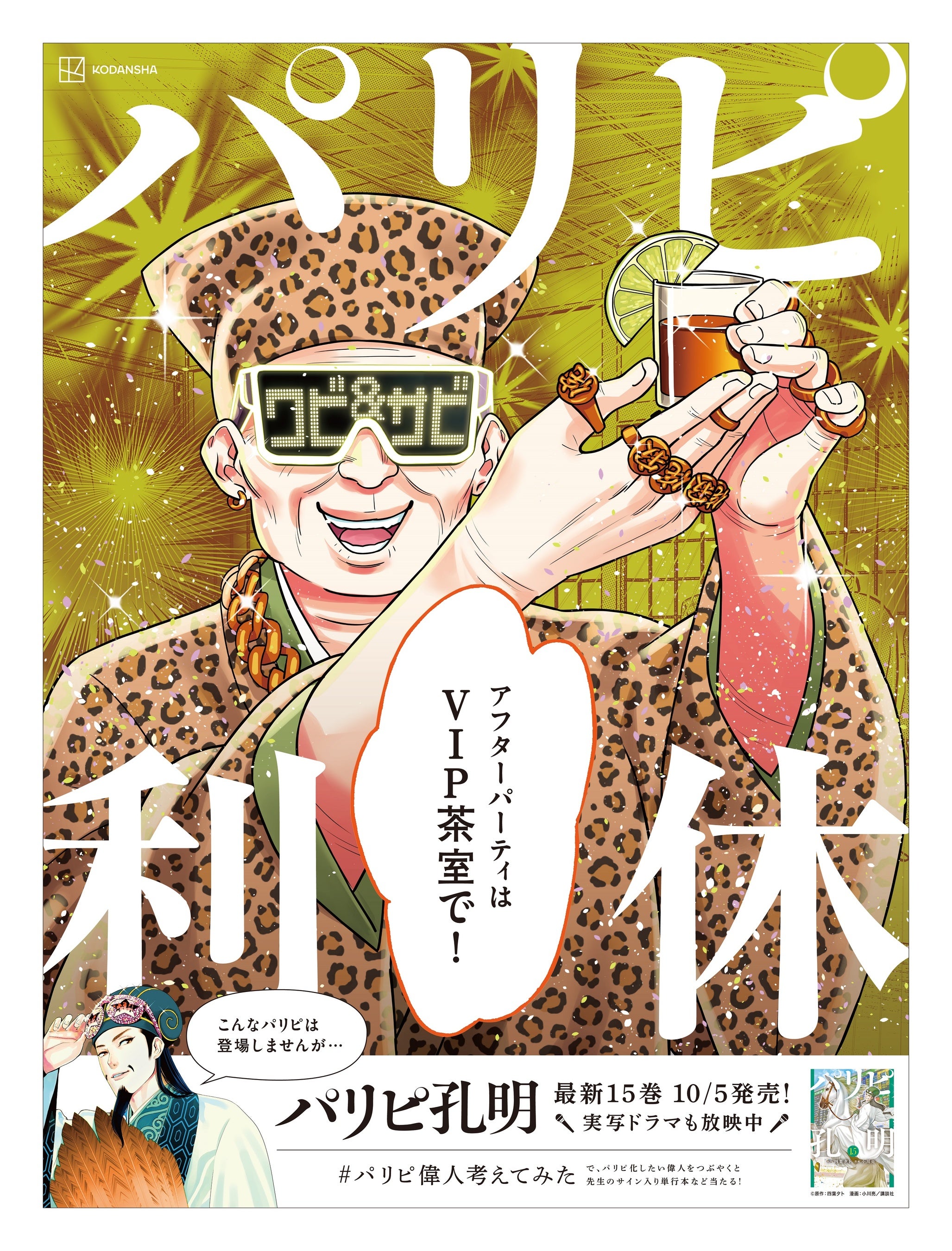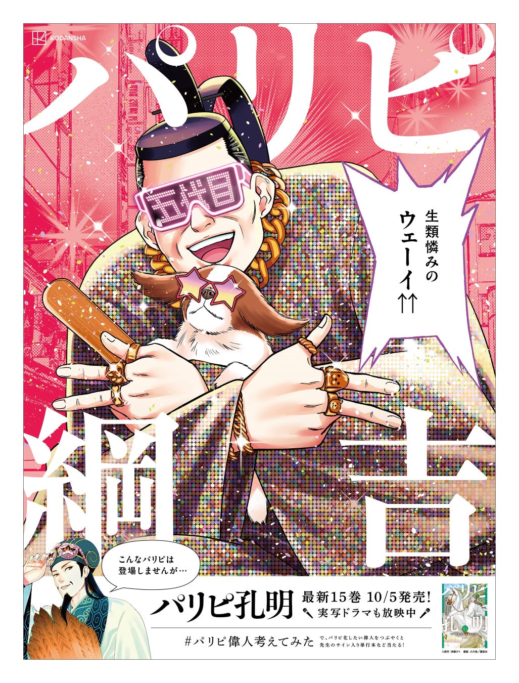 実写ドラマ絶賛放送中! ヤンマガ『パリピ孔明』最新15巻発売、朝日新聞にて12種の「パリピ偉人広告」を掲載! 全デザインと対象地域を大公開!