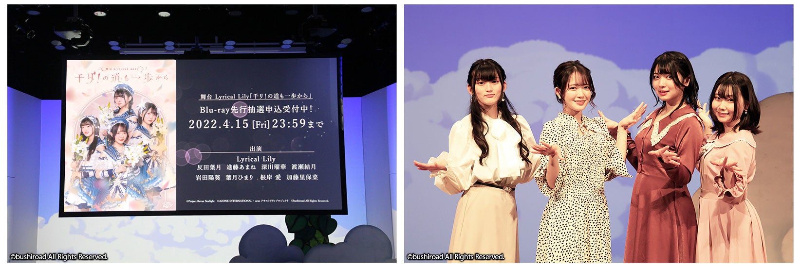 「しろくろビューネ」第一弾として発表された『舞台 Lyrical Lily「千リ!の道も一歩から」』では、出演キャストでLyrical Lilyのメンバーである反田葉月さん、進藤あまねさん、深川瑠華さん、渡瀬結月さんが登壇。