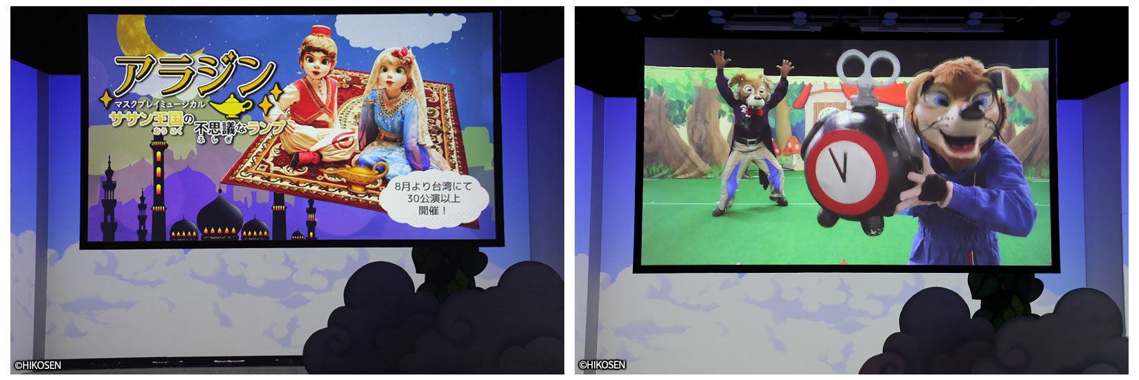今年度の劇団飛行船マスクプレイミュージカルレギュラー作品「ジャックと豆の木」に登場する主人公・ジャックと、お城の家庭教師である博士が登場し、劇中歌「でっかく生きよう」を披露しました。