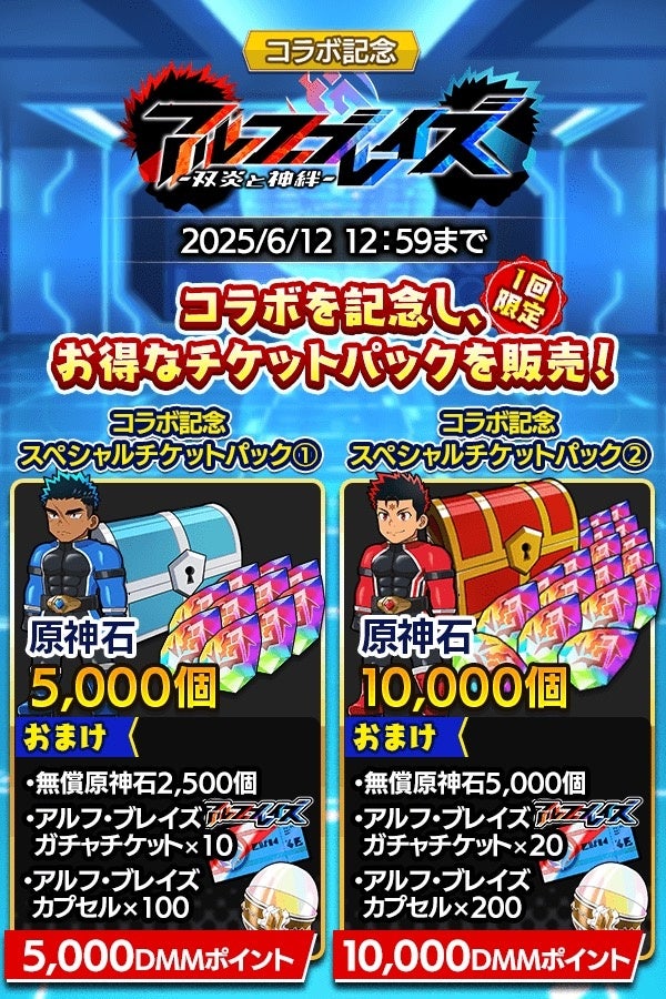 原神石に加えコラボイベント「アルフ・ブレイズ」ガチャチケット、ガチャカプセルがおまけに付いた、コラボキャラクターが入手しやすい特別パックです!