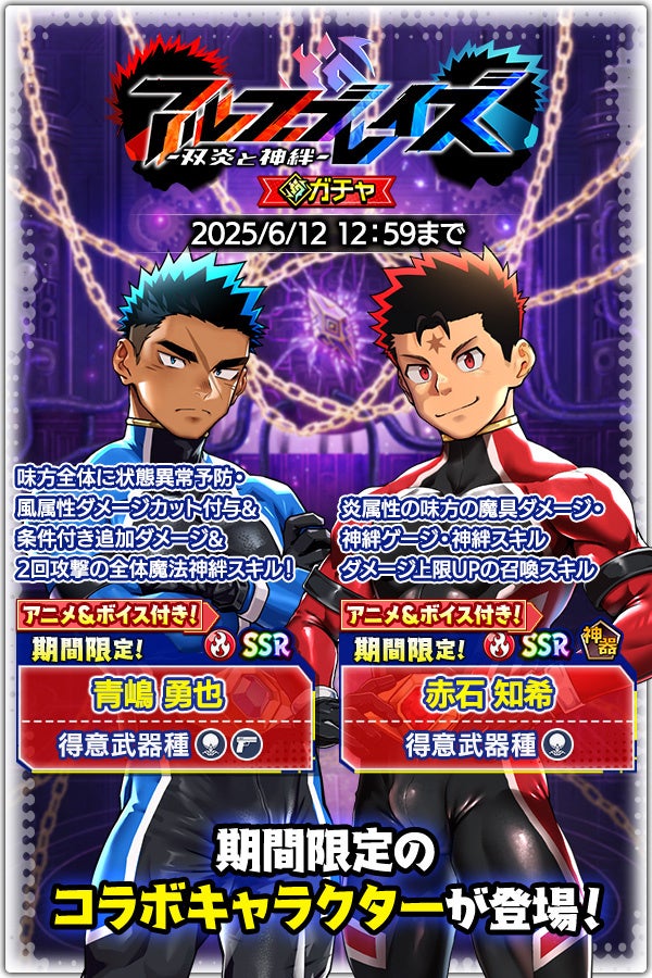 さらに、SSR魂友「青嶋勇也」とSSR神器「赤石知希」が入手可能な期間限定の「アルフ・ブレイズ~双炎と神絆~」ガチャも登場!