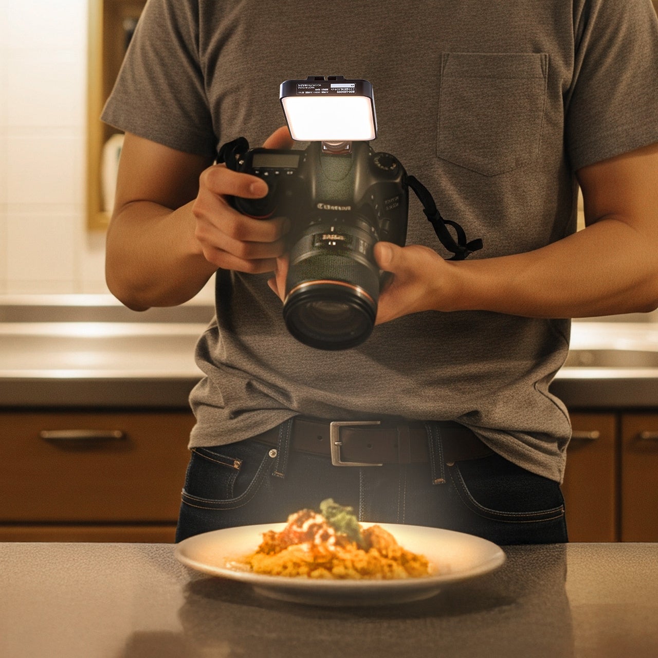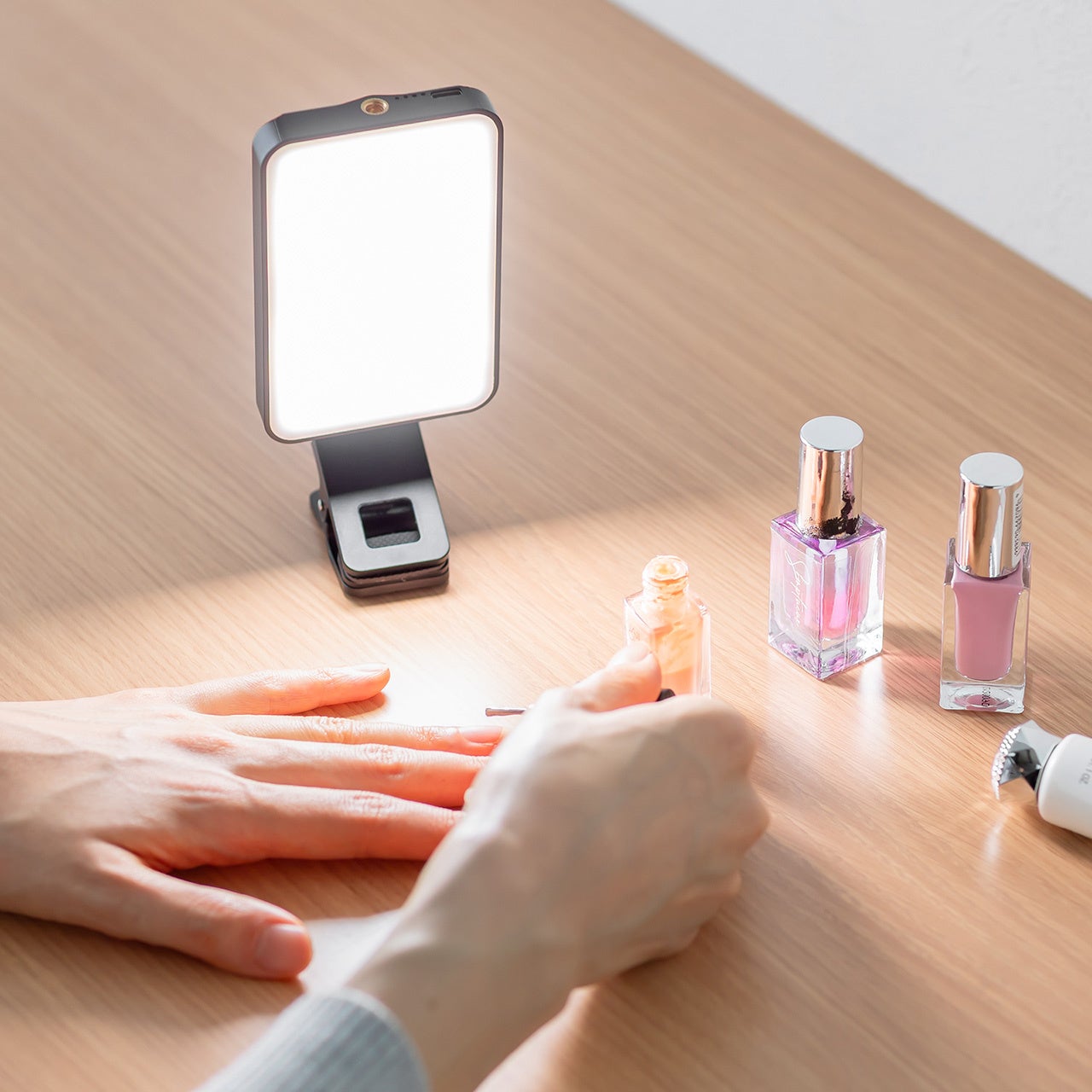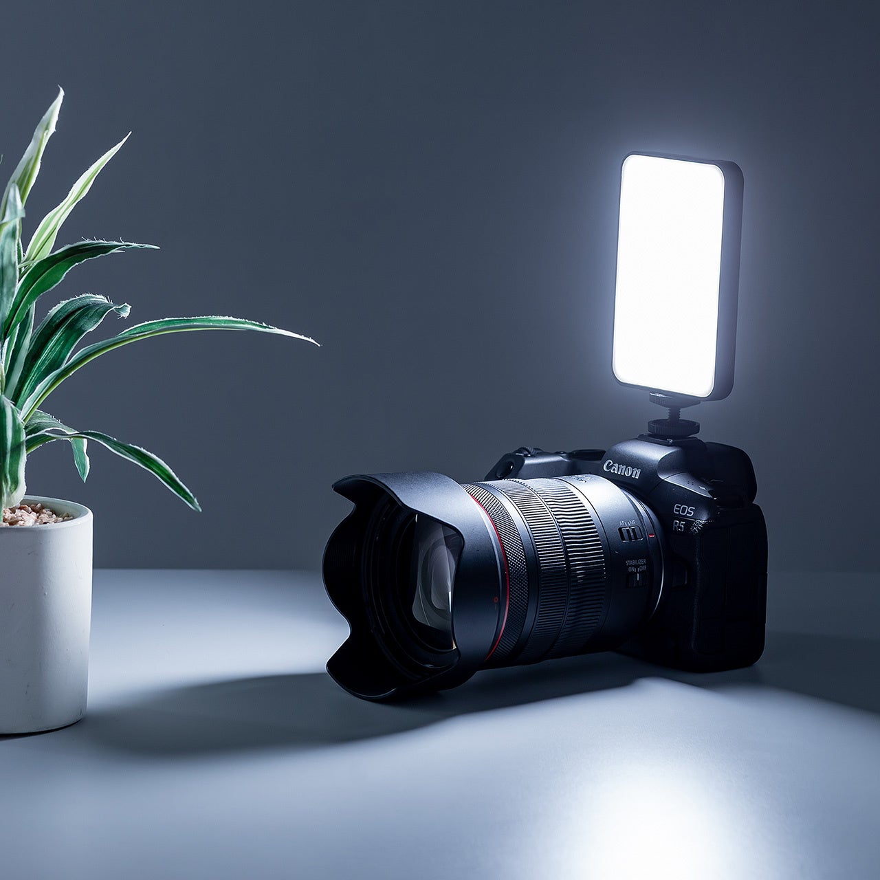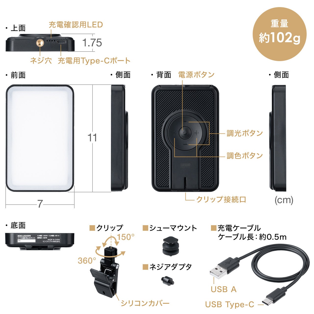 本製品は、スマートフォンや一眼カメラなど様々な撮影機材に取り付けられるLEDライトです。