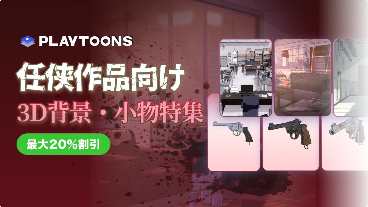 【最大20%OFF】ロケットスタッフ、WEBTOON・出版マンガ任侠作品向け3D背景と3Dモデルが全5種類が期間限定20%OFFで販売開始