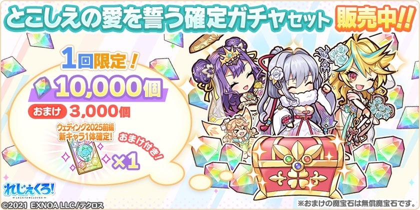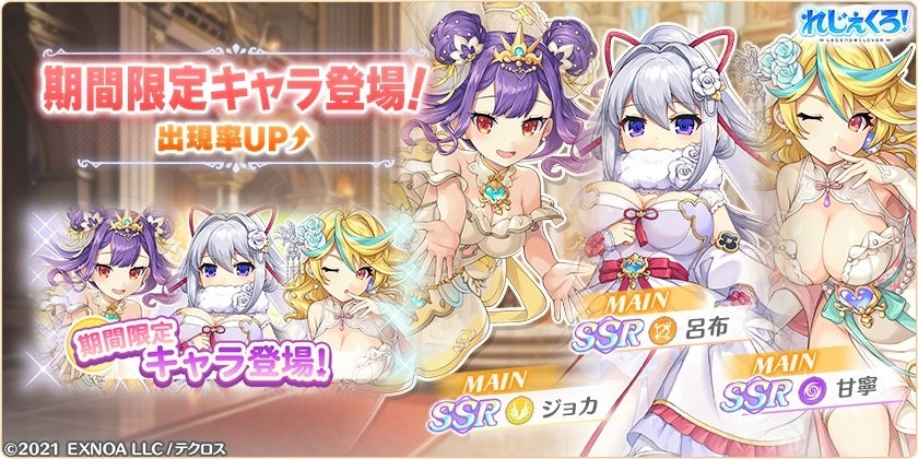 合同会社EXNOA(本社:東京都港区、CEO:村中 悠介、URL:https://games.dmm.com/)が運営するDMM GAMESにおいて、真の英雄となる王道ファンタジー『れじぇくろ!~レジェンド・クローバー~』(https://www.legend-clover.net/)にて、「呂布」「ジョカ」「甘寧」が華やかなウェディングドレス姿で登場!さらに彼女たちが活躍するイベント「花嫁たちはとこしえの愛を誓う・前編」が開催!