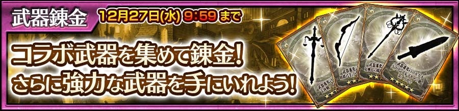 コラボ武器を集めて武器錬金することで、強力なアビリティがついた上位武器にすることができます!