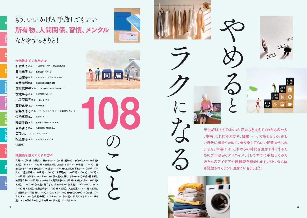 コンパクトながら、自分らしく心豊かに過ごすために「やめたらラクになること」を、各ジャンルの専門家から、主婦・会社員といった一般の方まで総勢40名以上が集い、たっぷり紹介しています。
