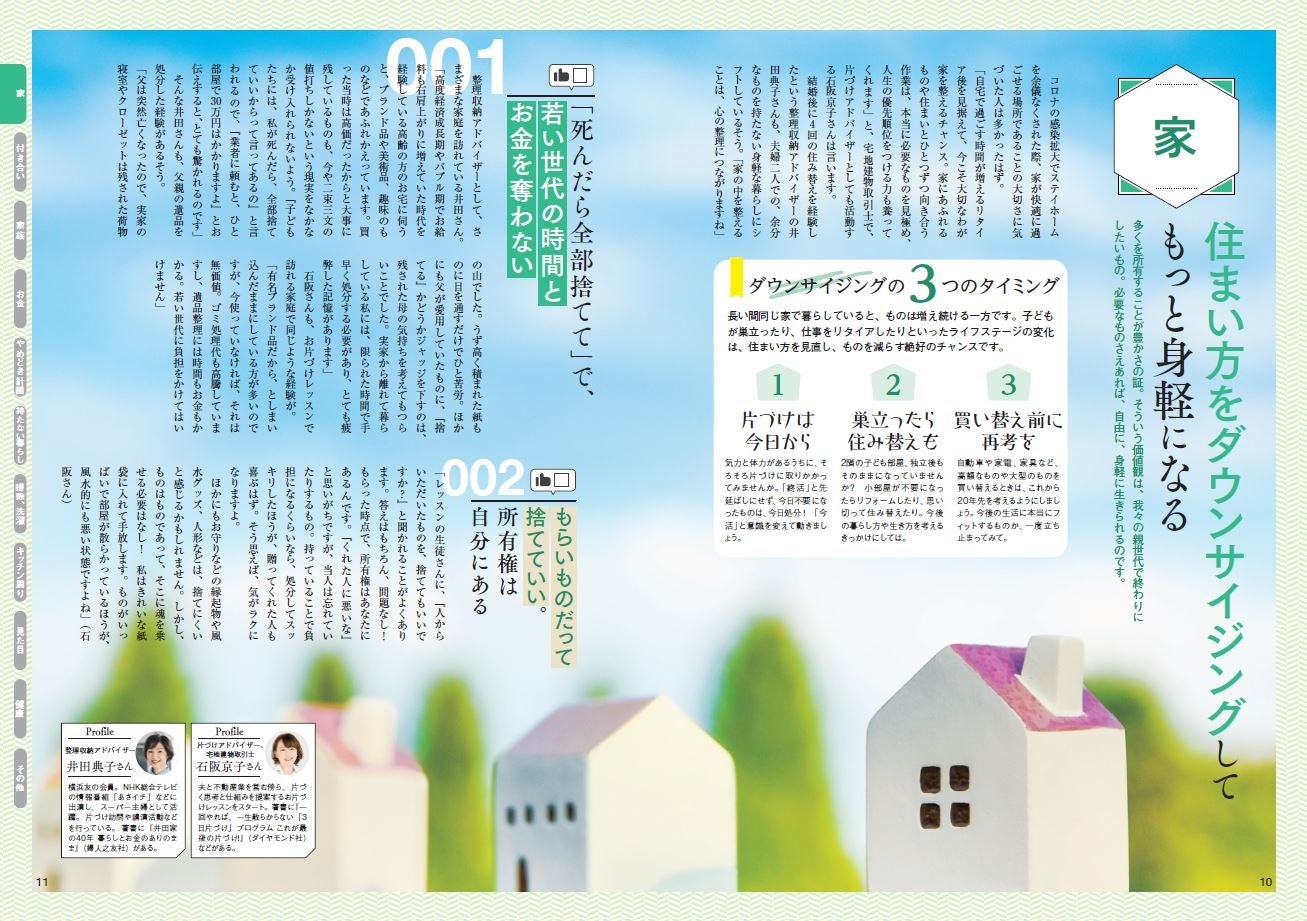 人間関係の見直し方から、自宅の整理・整頓、これからの人生設計に合わせた無駄のないマネー術など、日々を軽やかに快適に過ごすためのアイデア集。