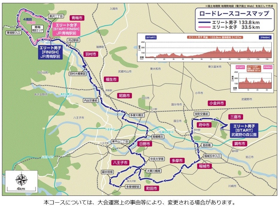・エリート男子は、第1回大会(72.6㎞)より距離を延長した133.8㎞のコース