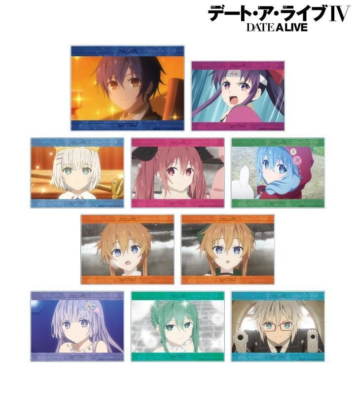 五河士道、夜刀神十香、鳶一折紙、五河琴里、四糸乃、八舞耶倶矢、八舞夕弦、誘宵美九、七罪、本条二亜の場面写をアクリルカードに仕上げました。