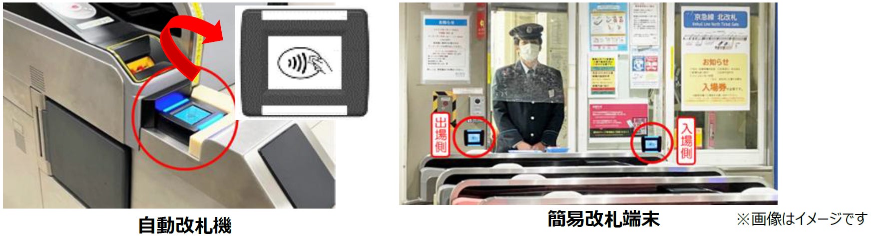 利用可能駅は、都営地下鉄浅草線、三田線、大江戸線の26駅、京急線の10駅で、お客様ご自身のお持ちのタッチ決済対応のカードや同カードが設定されたスマートフォン等を自動改札機等にタッチすることでスムーズにご乗車いただけます。