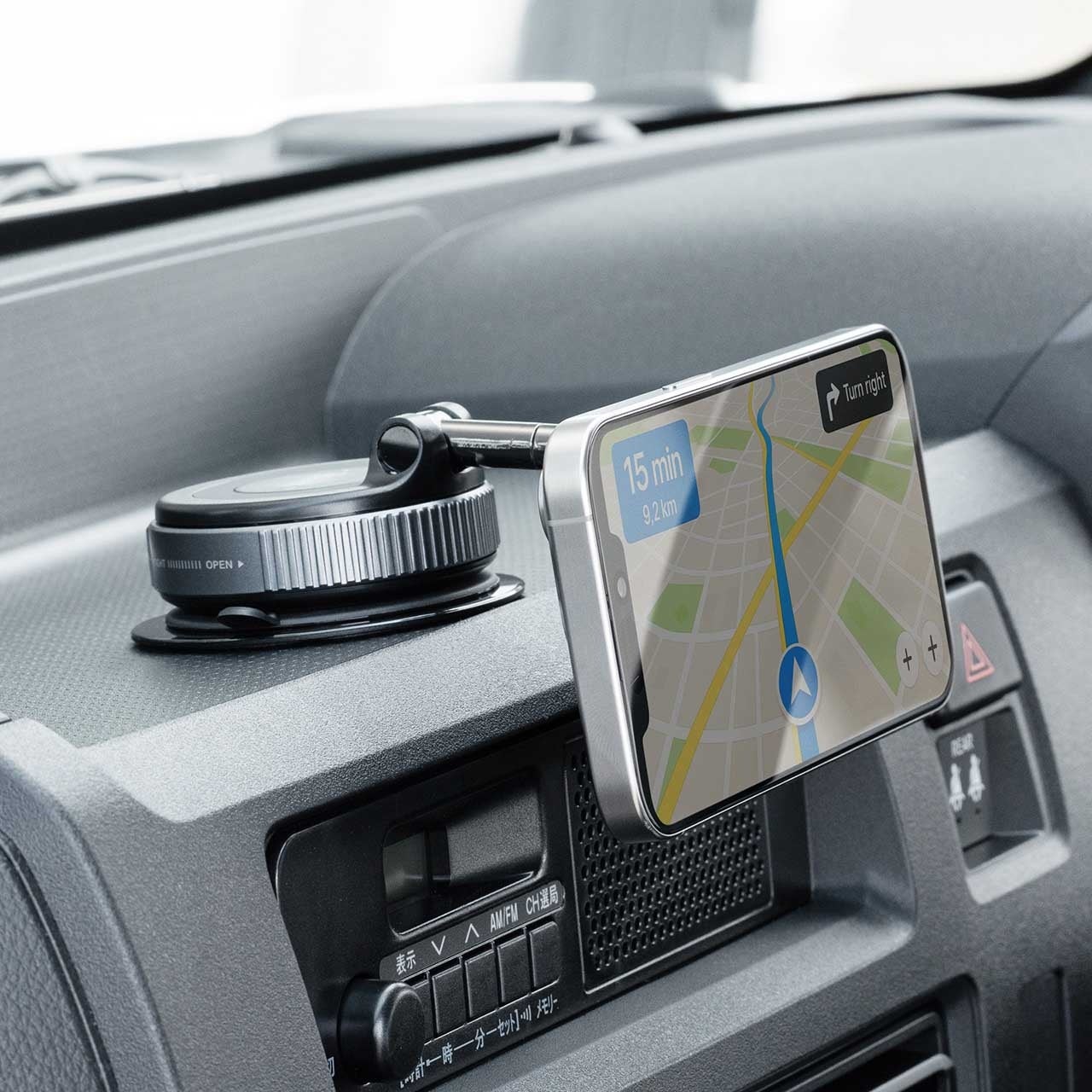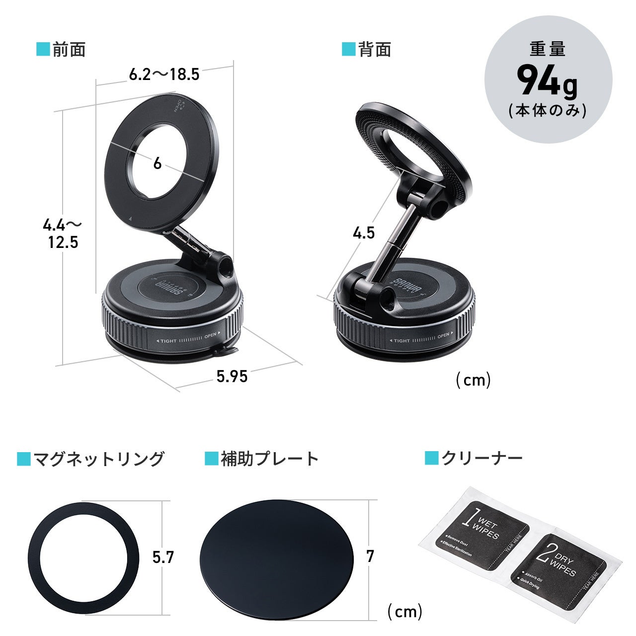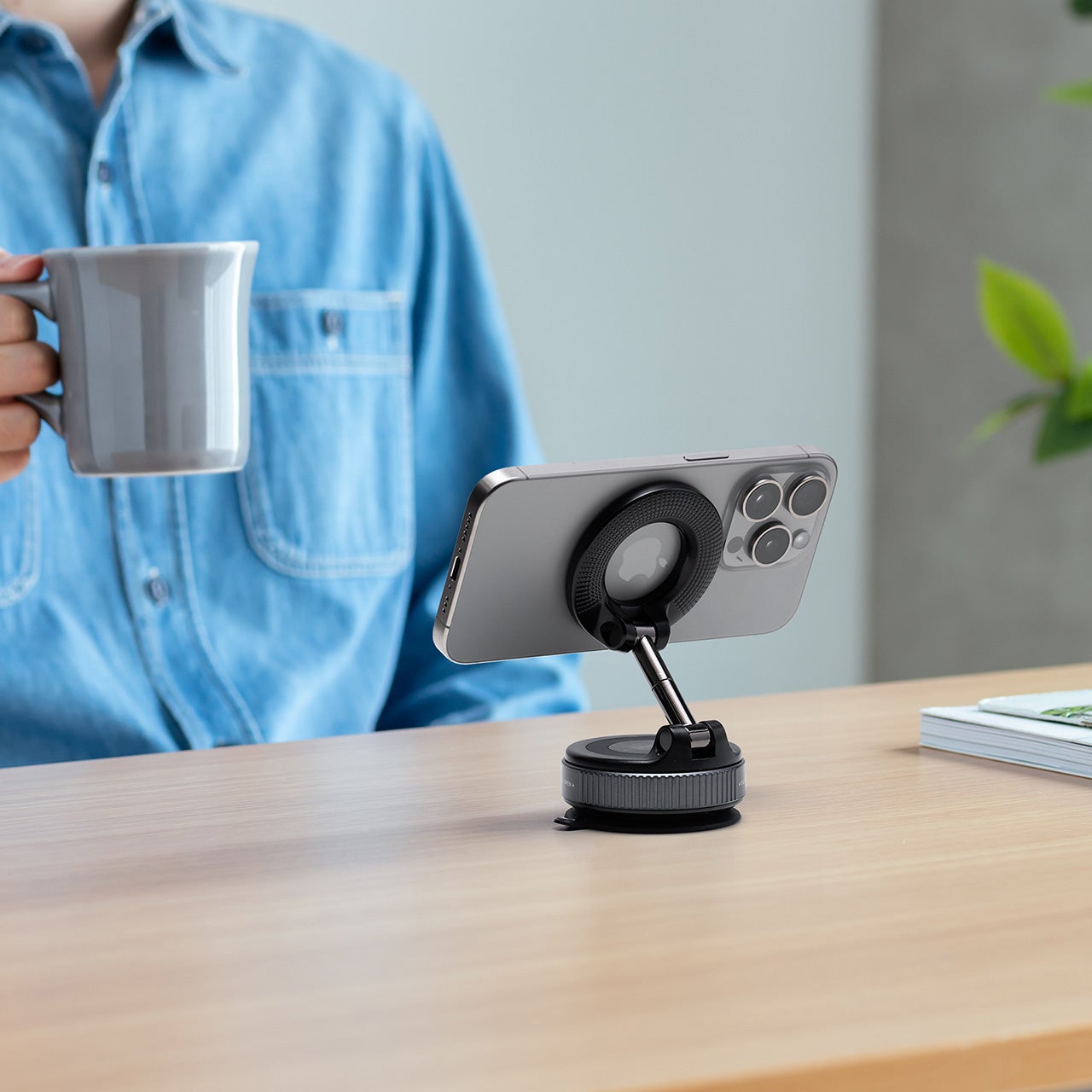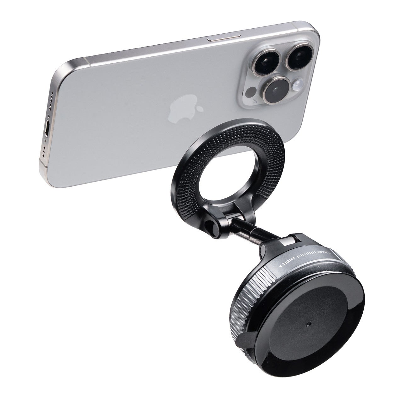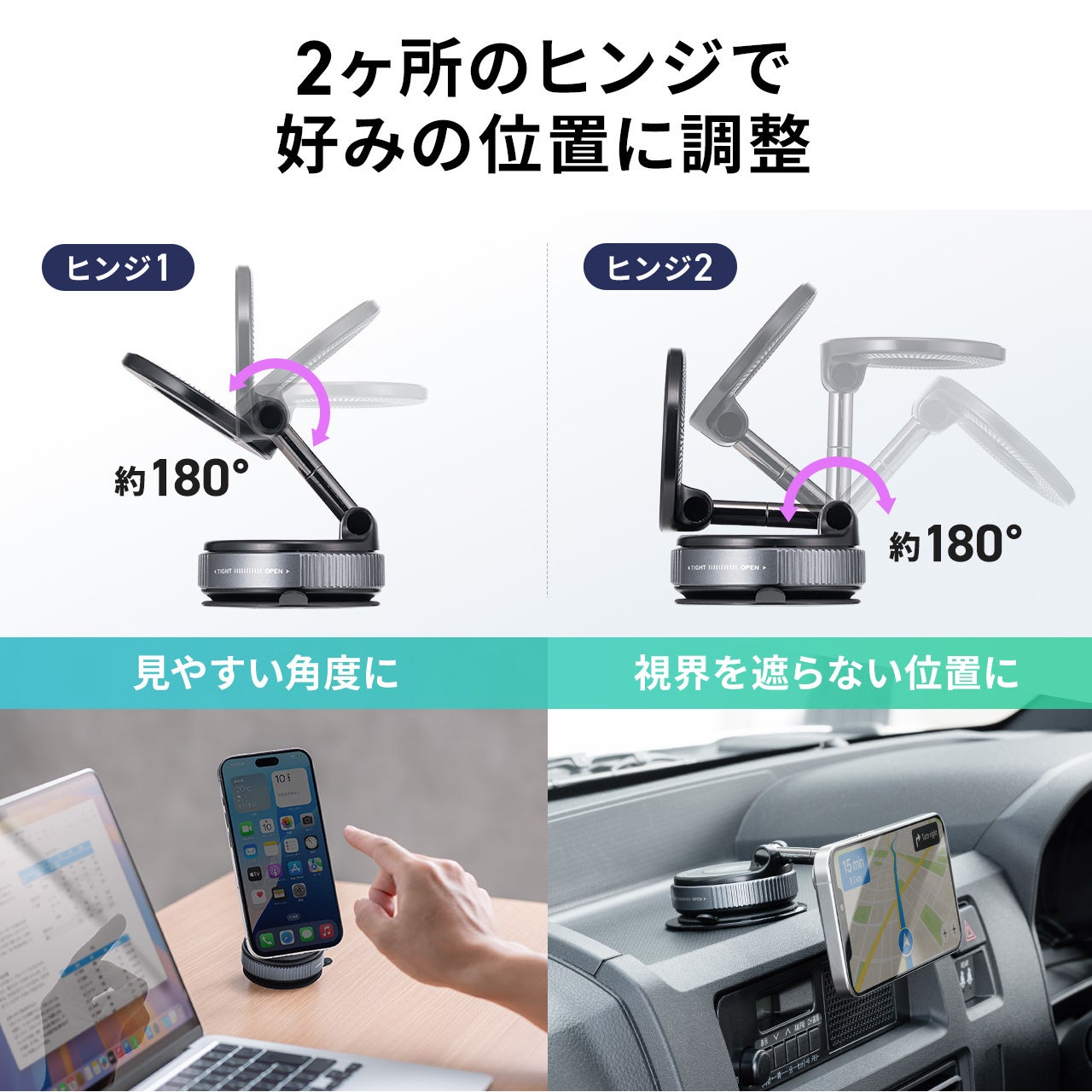 MagSafe対応スマホスタンド 手動真空吸盤 360°調整 片手操作 折りたたみ スマホホルダー 携帯スタンド 車載ホルダー iPhone Android メタルリング付属