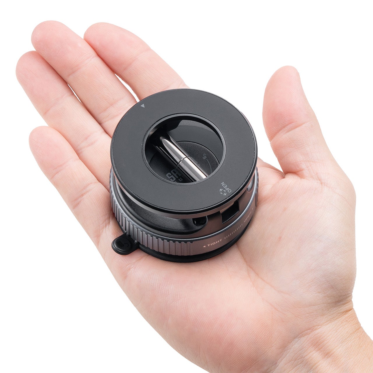 設置面に押し当ててロックリングを時計回りに回すと真空で固定され、取り外す際は反時計回りに回すだけで外せます。