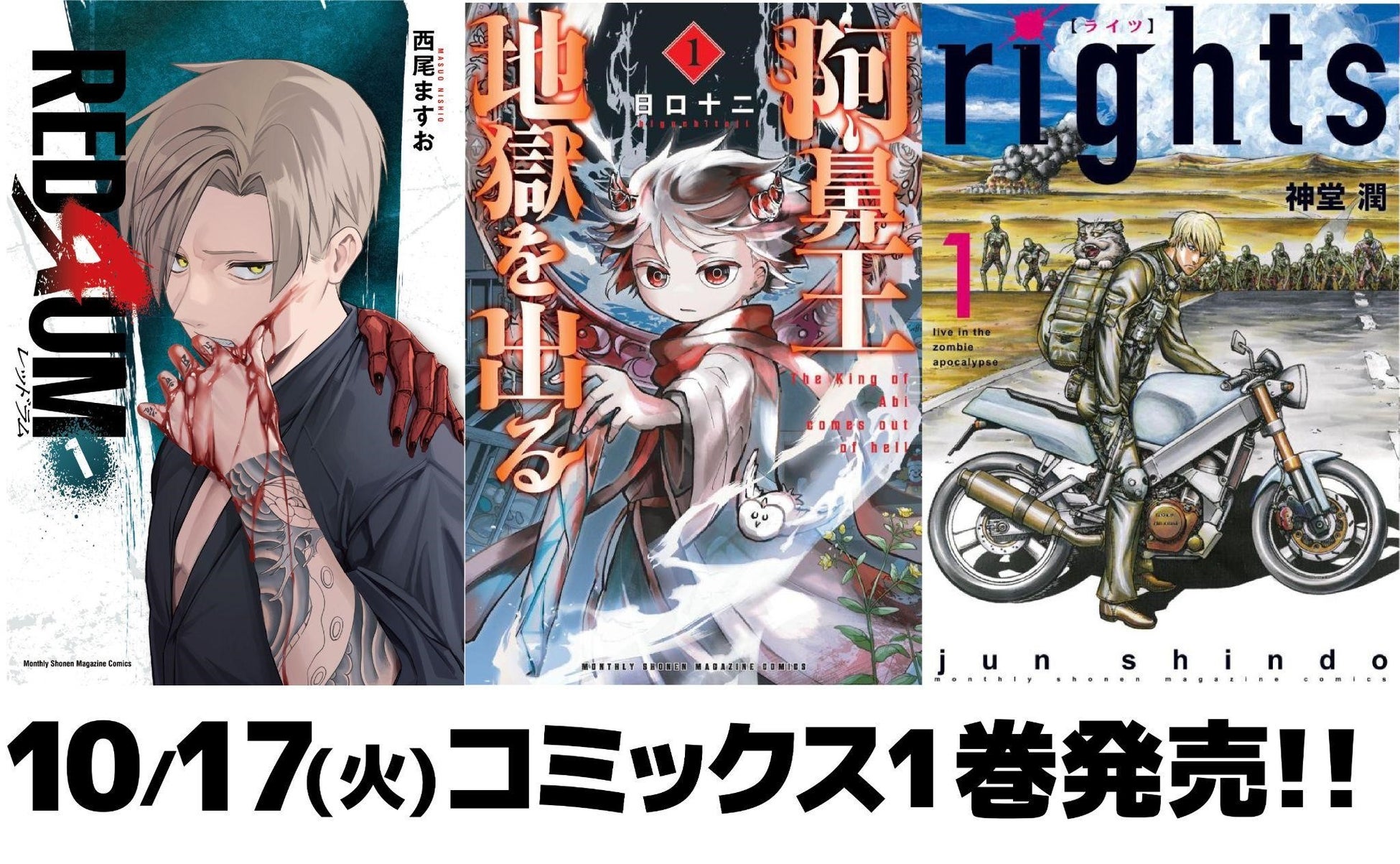 月マガ基地から新刊続々!『REDRUM』『阿鼻王地獄を出る』『rights』