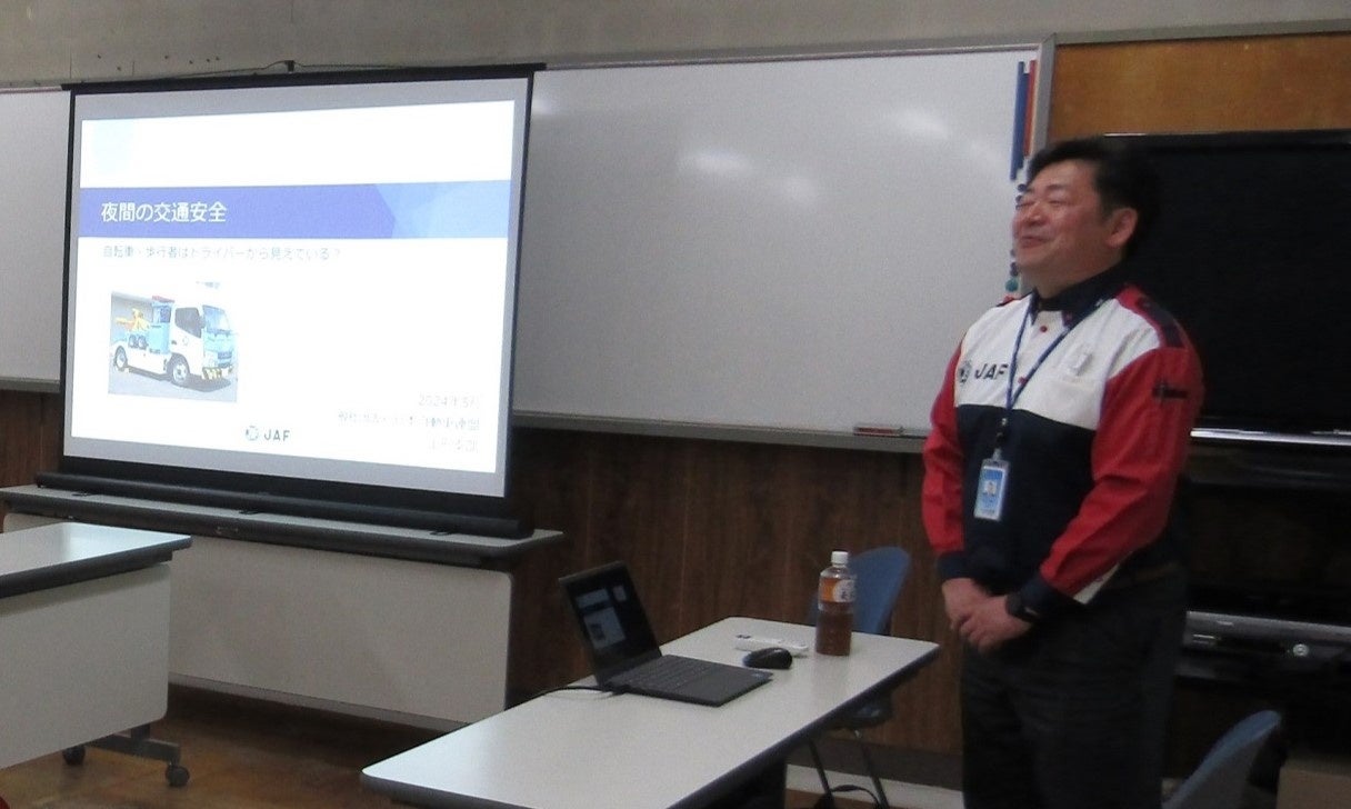 ロードサービス隊員として路上救援作業の経験があるJAF職員が講師となり、「冬の交通安全」や「これがあったら安心な装備」の紹介などをおこなう座学講習と、凍結路面を再現する低μマットの上で急ブレーキを踏む「スリップ疑似体験会」を実施します。