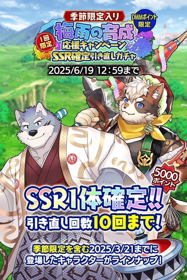 梅雨の育成応援キャンペーンを記念して、季節限定入りの10回引き直し可能なSSRを確定で入手できる