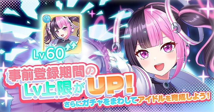 リリース日決定を記念して、事前登録ガチャのSSRアイドル排出率が2倍になるキャンペーンを開始いたしました! さらに、事前登録ガチャでキープしたアイドルを重複して引くことで上がるレベルも最大40から最大60に上限を開放いたしました! お気に入りのアイドルを育ててサービス開始に備えよう!