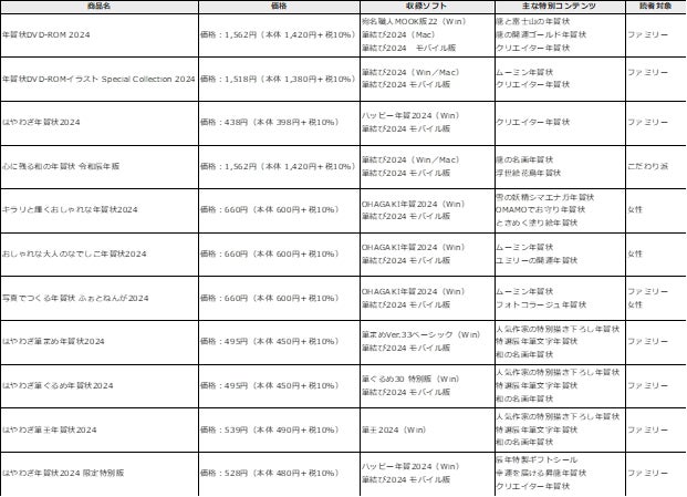 2023年11月1日(水)より、2024年辰年版年賀状素材集の年賀状カタログページを、期間限定で全公開いたします。購入前でも、ご自宅のパソコンやスマートフォンなどでゆっくりと年賀状を選ぶことができます。