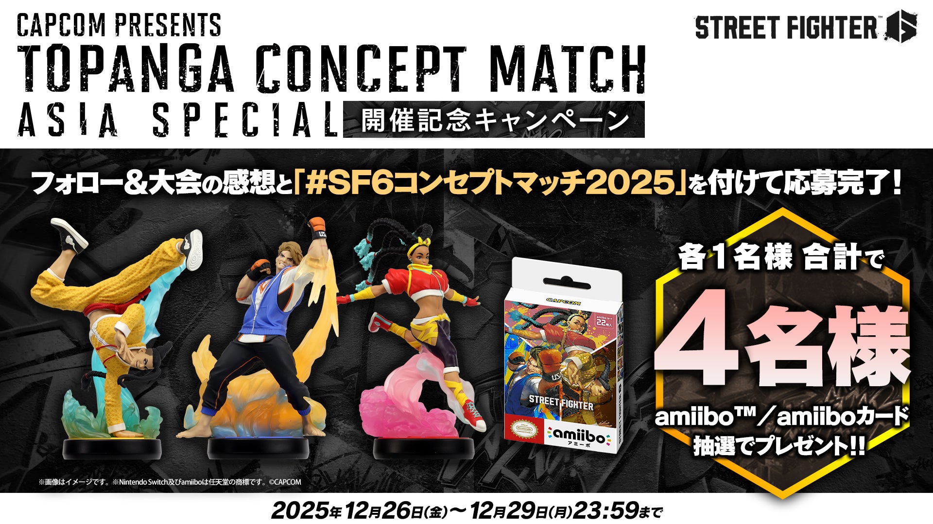 「Capcom presents TOPANGA CONCEPT MATCH Asia Special」の開催を記念して、amiibo™、amiiboカードが抽選で当たるキャンペーンを実施!