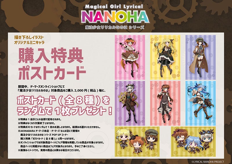 期間中、ゲーマーズオンラインショップにて「魔法少女リリカルなのは」対象商品をご購入2,000円(税込)毎に、ポストカード(全8種)をランダムで1枚プレゼント!