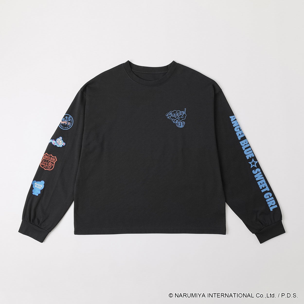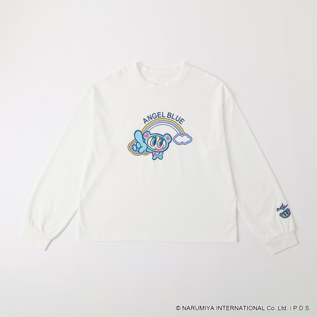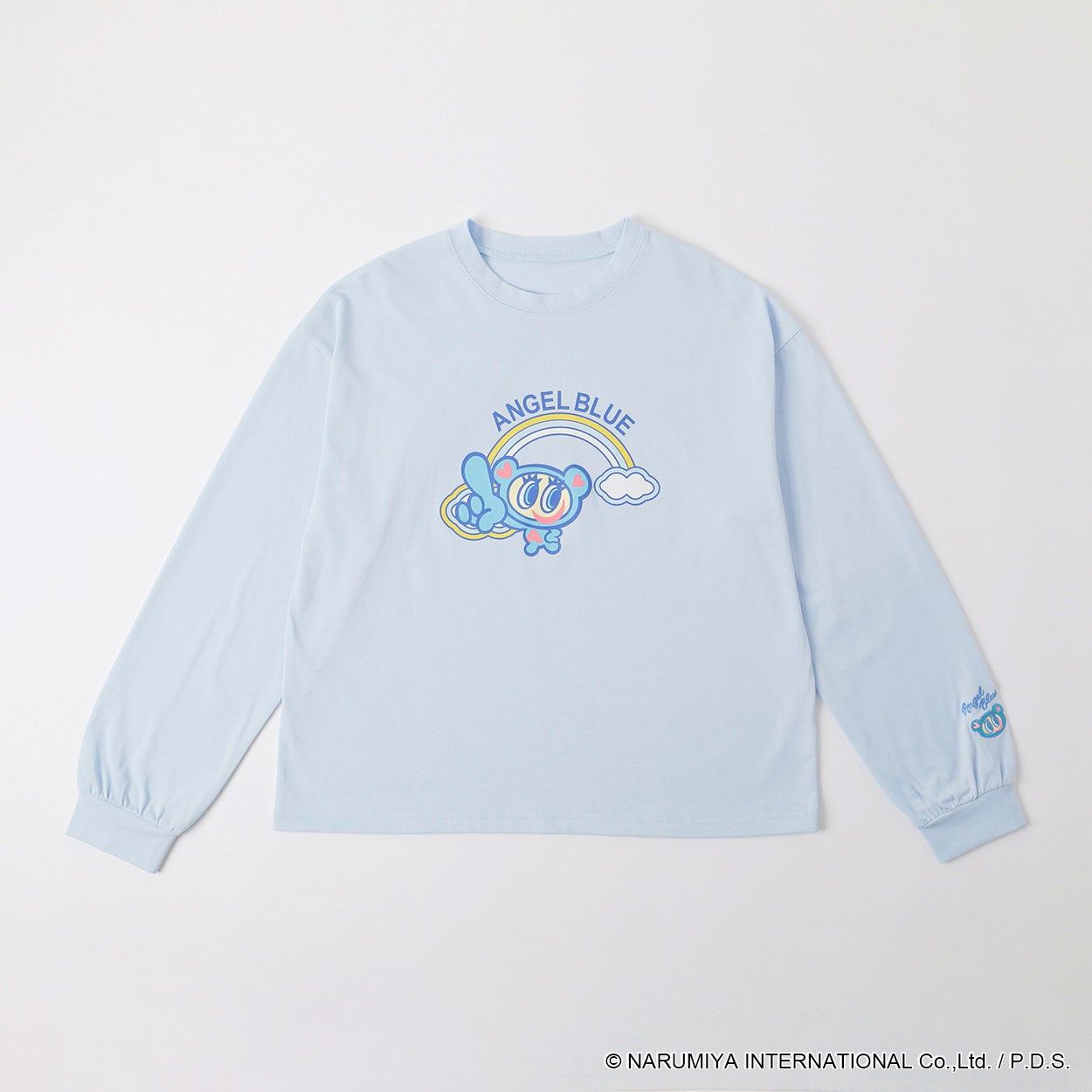 ■エンジェルブルー袖刺繡プリント長袖Tシャツ