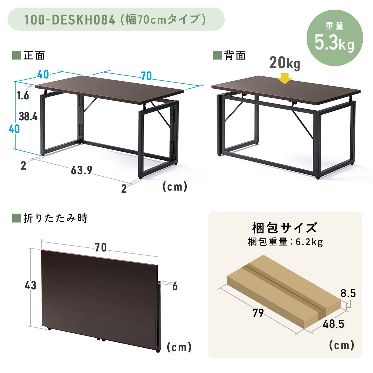サンワサプライ株式会社(本社:岡山市北区田町1-10-1、 代表取締役社長 山田 和範)が運営している直販サイト『サンワダイレクト』では、使いたいときだけパッと簡単3ステップで設置でき、片付ける時には厚さ6cmでコンパクトにサッと収納できる人気のデスクの折りたたみデスクに、高さ40cmのロータイプの「100-DESKH084(幅70cm)」と「100-DESKH085(幅90cm)」のホワイトとブラウンを発売しました。