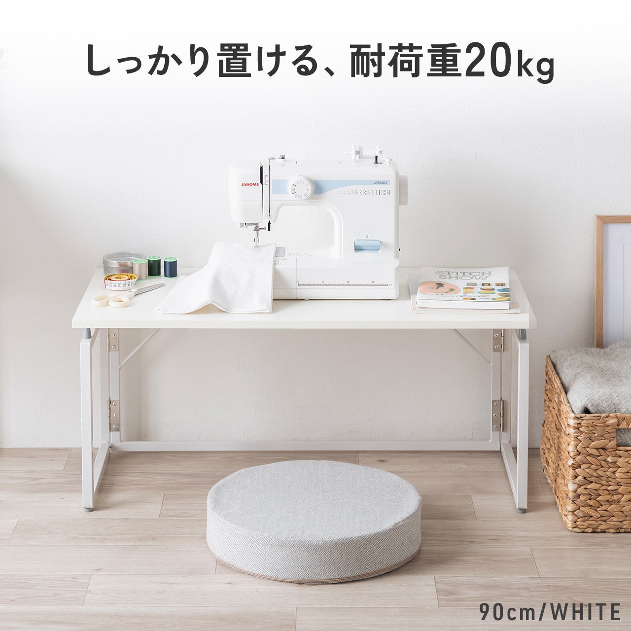 3ステップで簡単に折りたたみができ、収納時には厚さ6cmになる折りたたみローデスク
