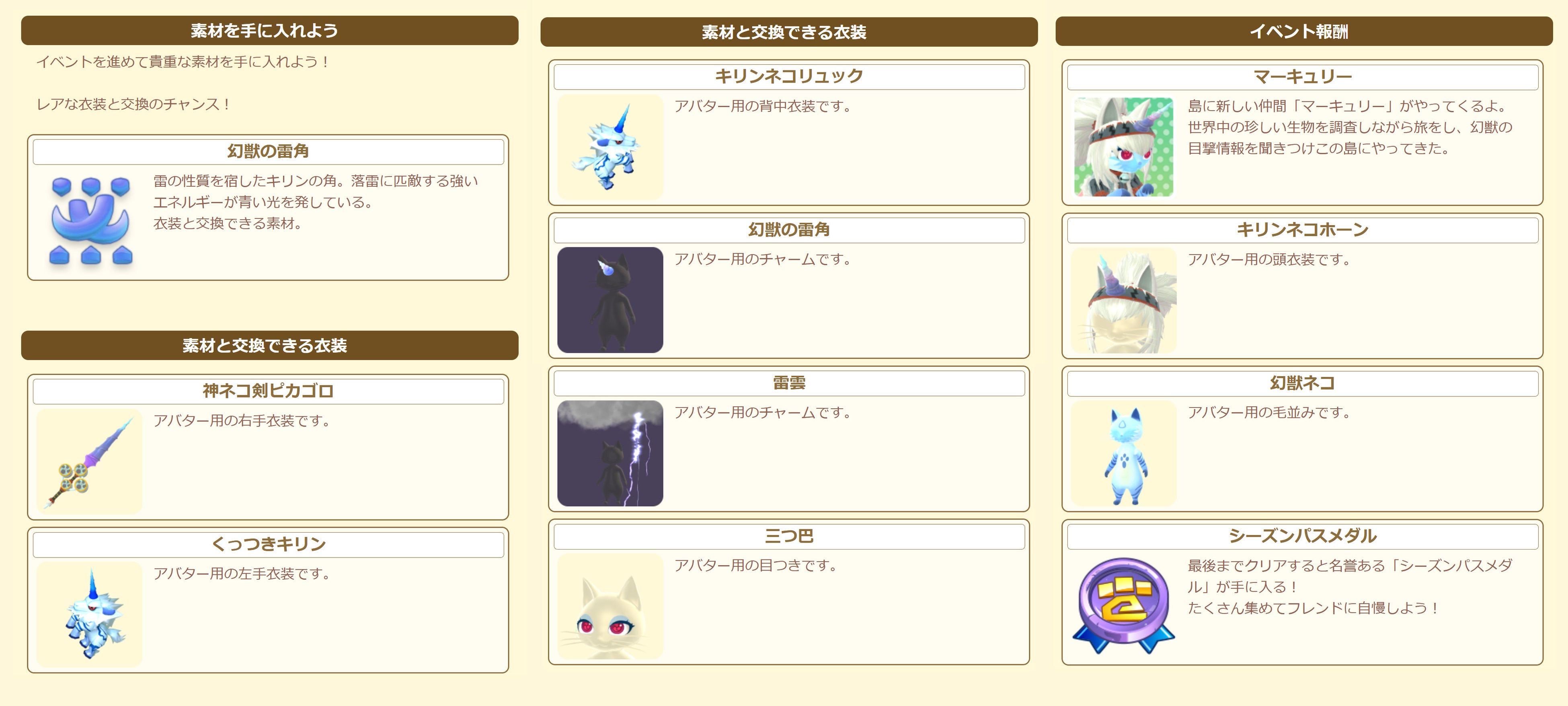 イベントに参加して「神ネコ剣ピカゴロ」「幻獣の雷角」などの豪華報酬を手に入れよう!