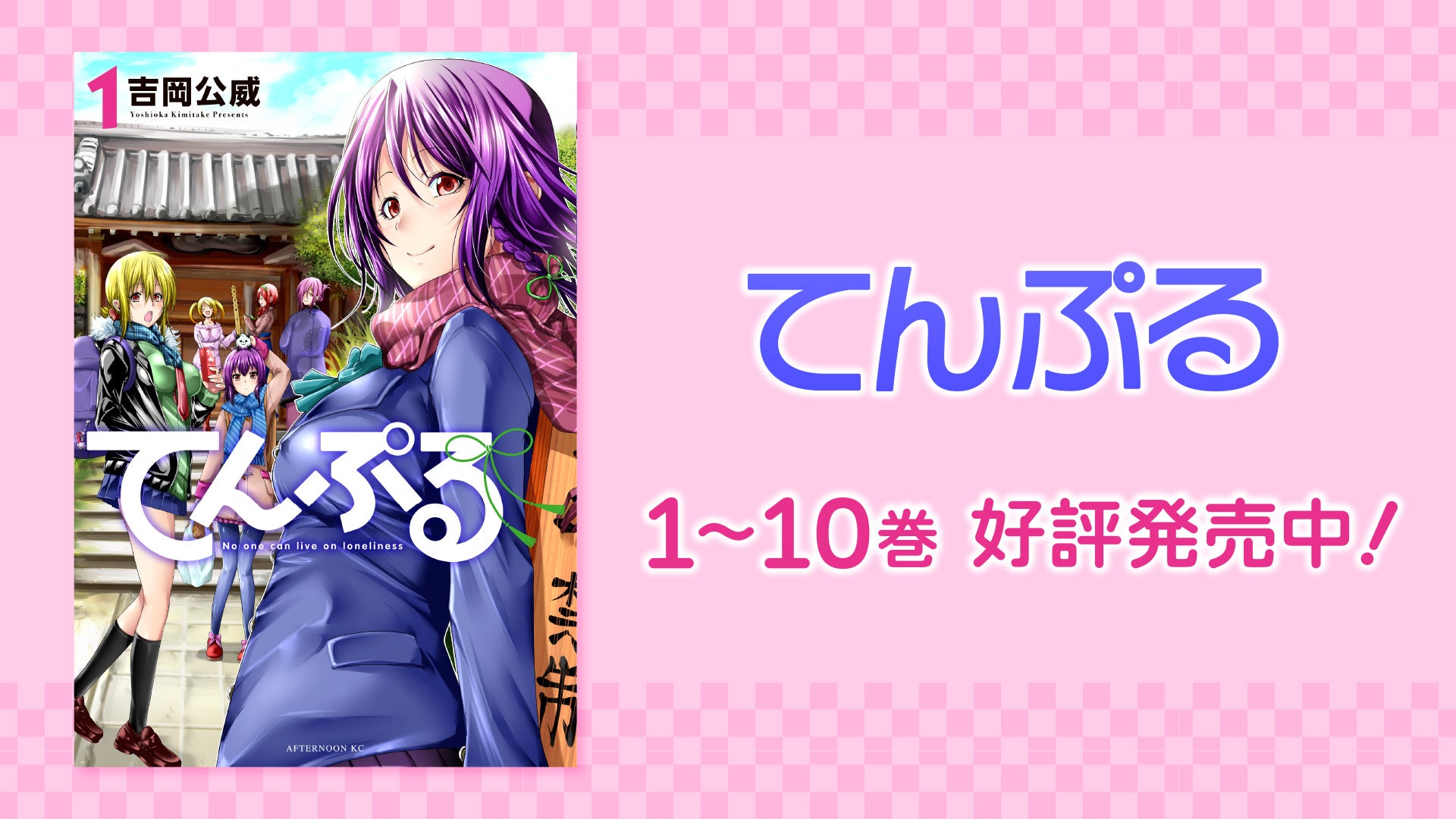 累計800万部突破の人気マンガ『ぐらんぶる』(原作:井上堅二)などで知られる、吉岡公威先生による最新作『てんぷる』が2023年7月よりTVアニメ化!TOKYO MX、BS11ほかにて放送され、先月末最終回を迎えました。これを記念して、講談社が運営するYouTubeチャンネル『フル☆アニメTV』にて、TVアニメ『てんぷる』全12話を期間限定で一挙無料配信いたします。本日10月27日から11月9日までの期間限定配信となりますので、ぜひお楽しみください!