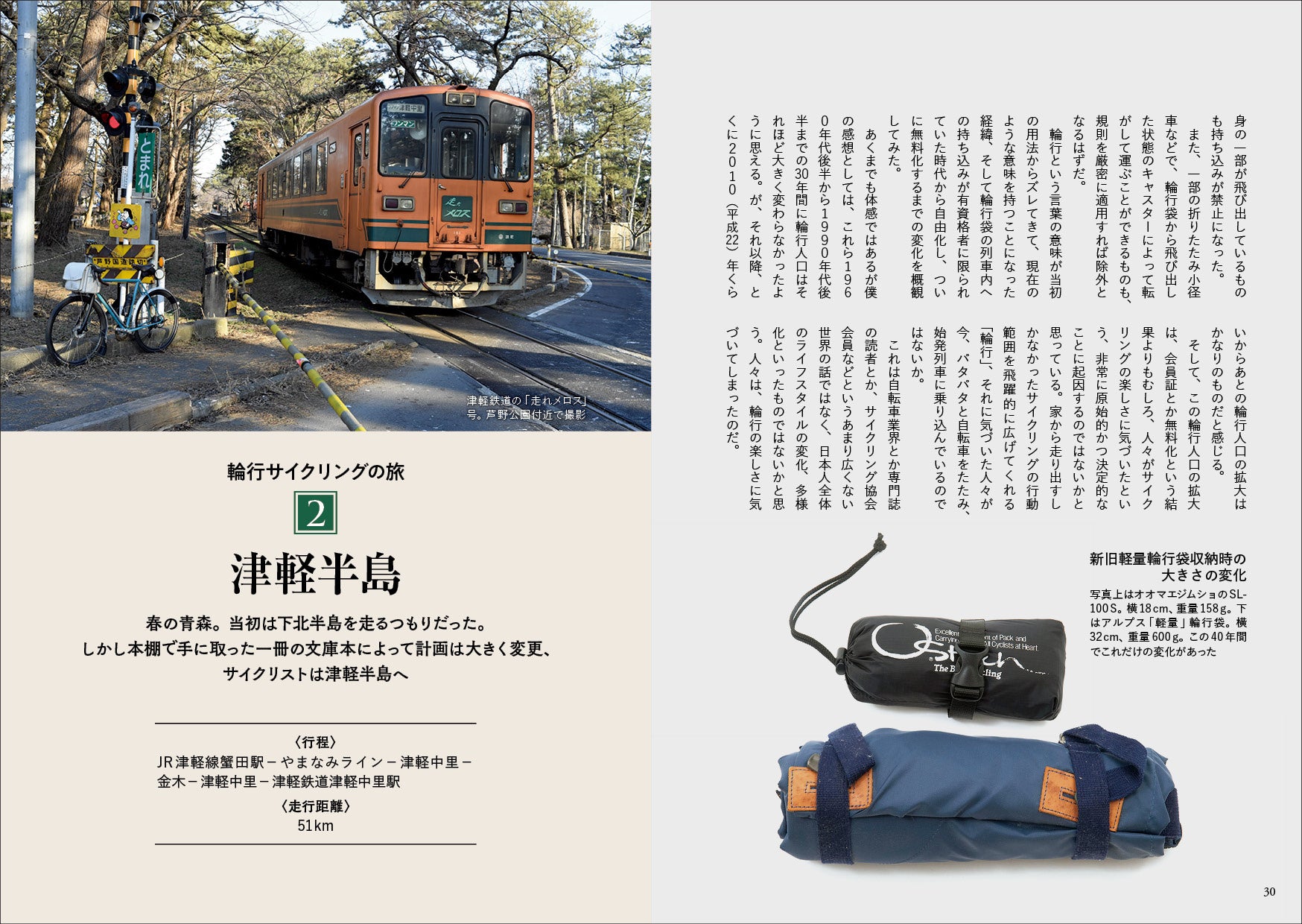 本編は紀行「輪行サイクリングの旅」とハウツー「輪行サイクリングの知識と基礎」を交互に紹介。