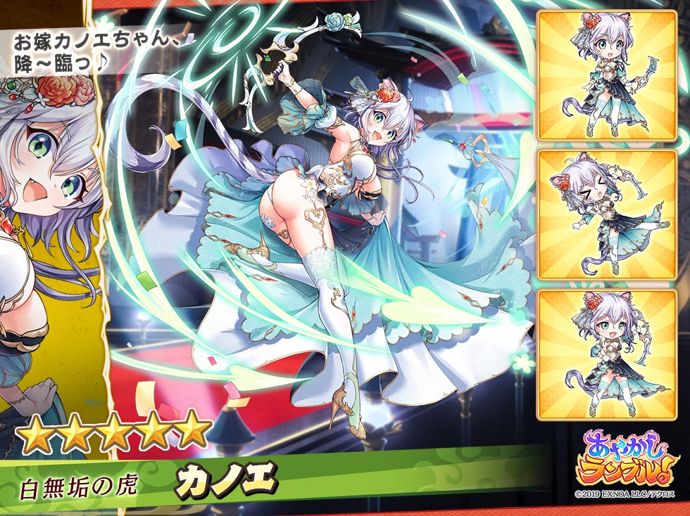 DMM GAMES『あやかしランブル!』にて、新たに花嫁衣裳の期間限定「★5 カノエ」「★5 キノエ」が登場!さらにイベント限定装備が手に入る降魔の戦場イベントも開催!